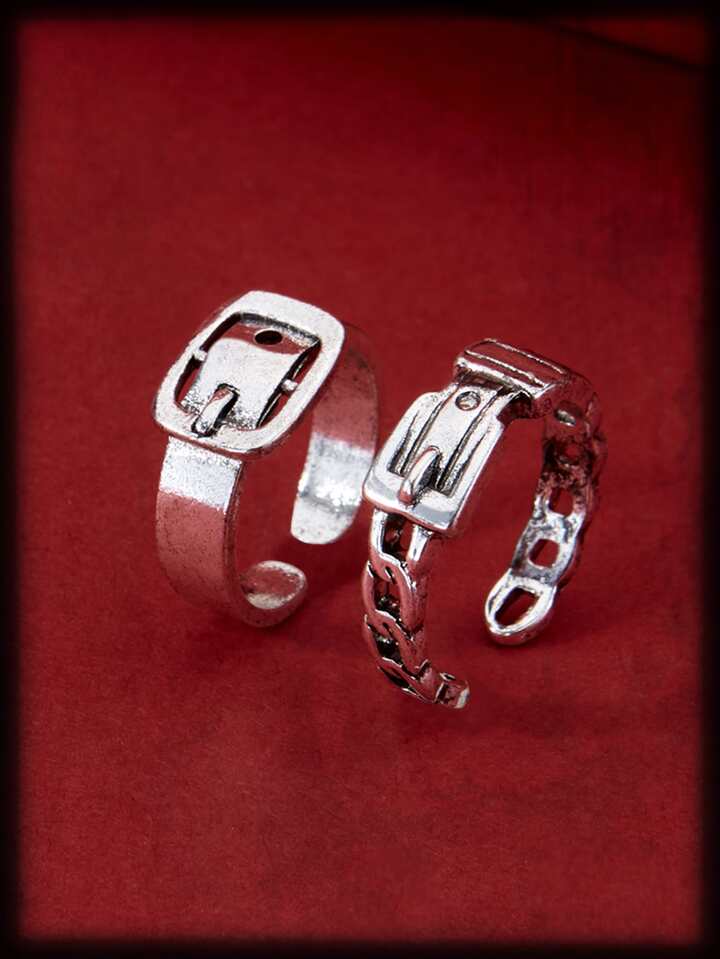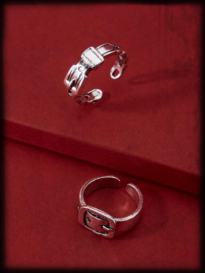 Grunge Punk 2 pezzi Anello del polsino con fibbia