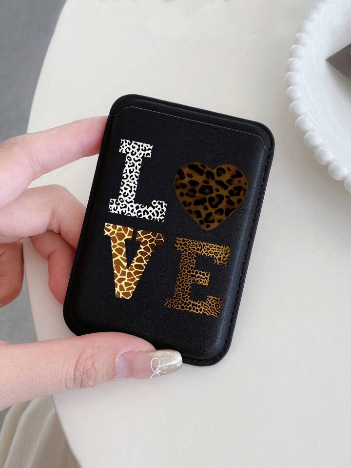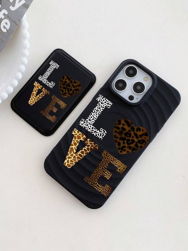 Grunge Punk 2 pezzi/set Custodia magnetica per telefono con ricarica senza fili, compatibile con iPhone, con stampa leopardata a forma di LOVE