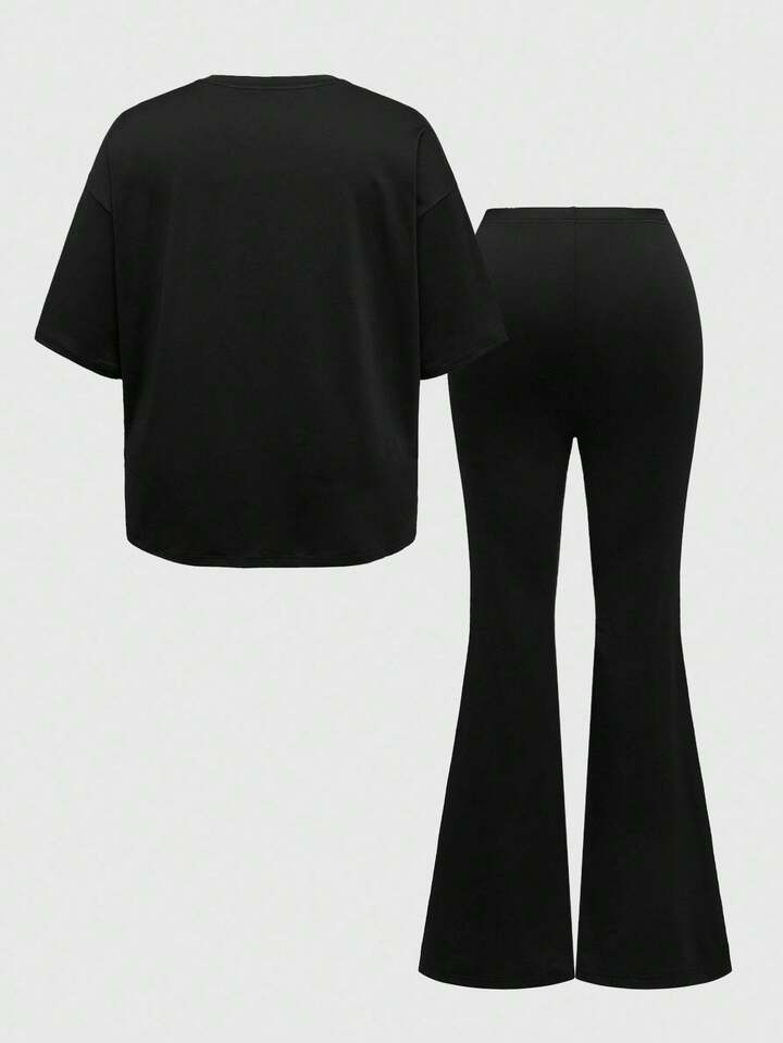 Grunge Punk 2 pezzi/set Donna Casual Nero Colore Solido T-shirt Basic e Pantaloni a Zampa