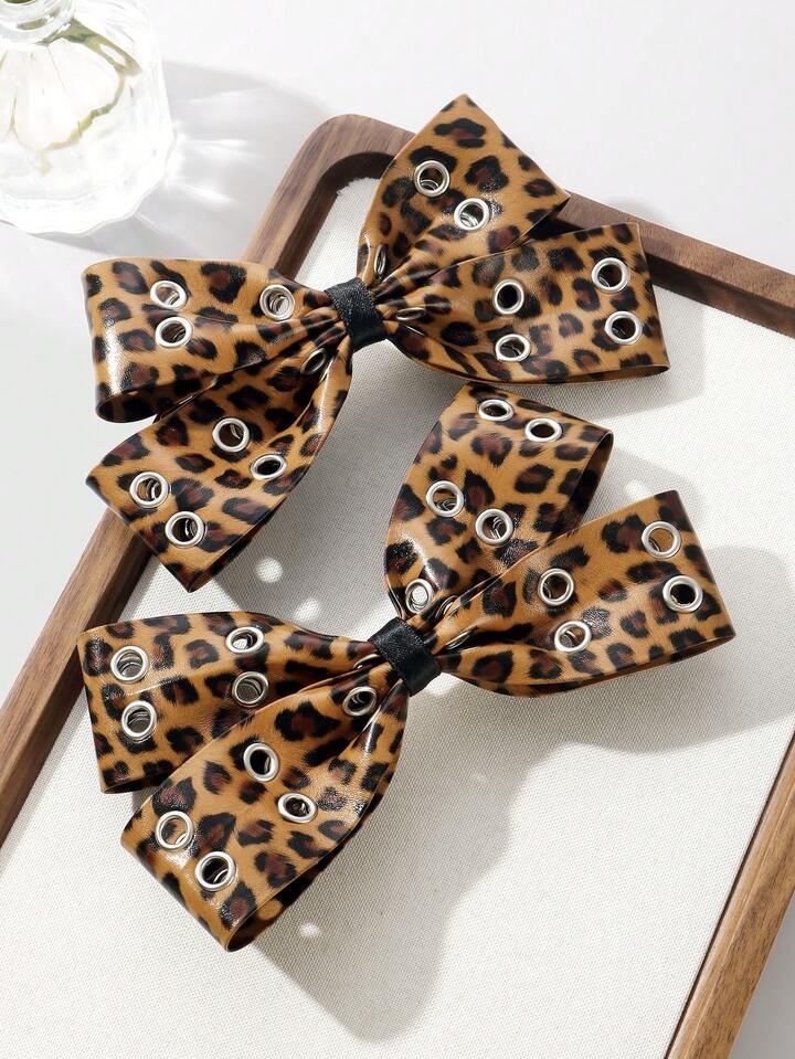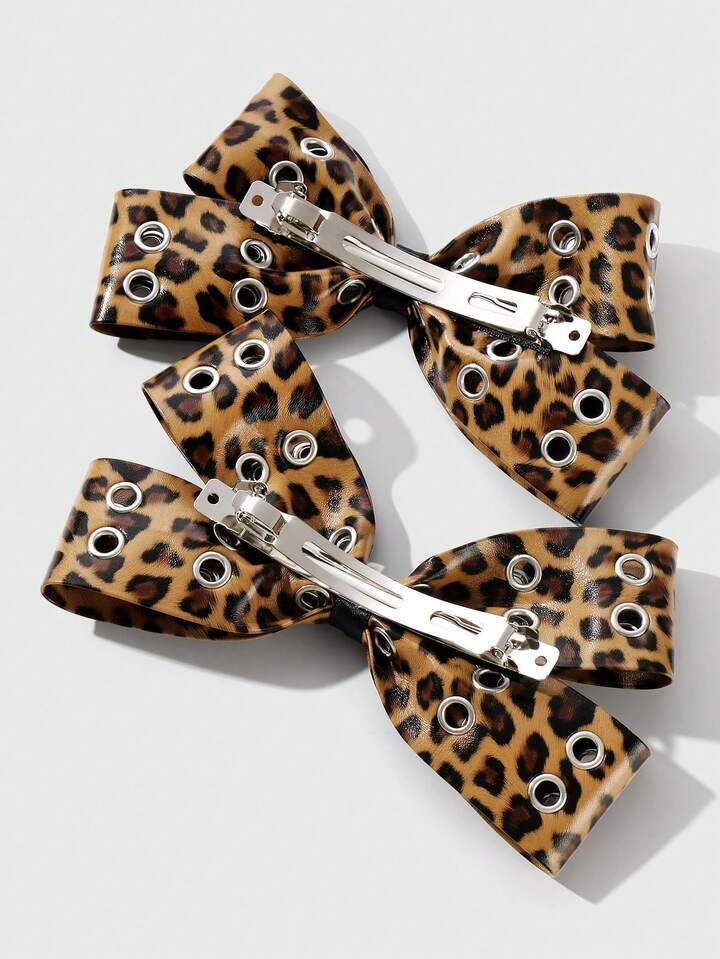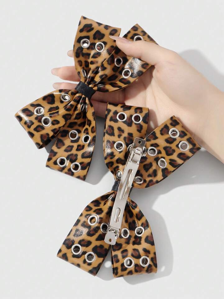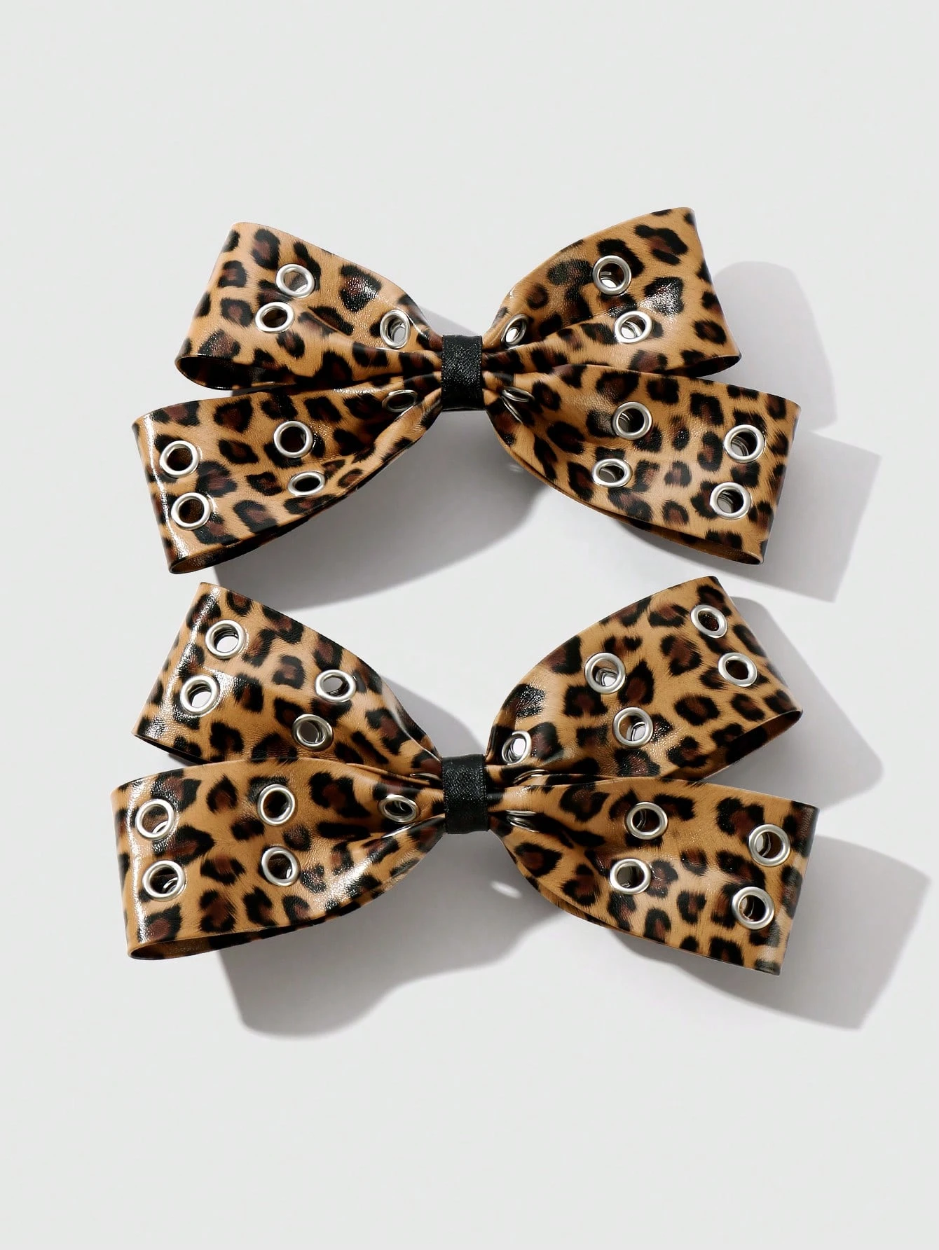 Grunge Punk 2 pezzi Stile Y2K Vintage Elegante Punk Gothic Fermagli per capelli in pelle nera con fiocco e doppia presa d'aria, adatti per sorelle, amiche per uso quotidiano o regalo per vacanze, Ognissanti