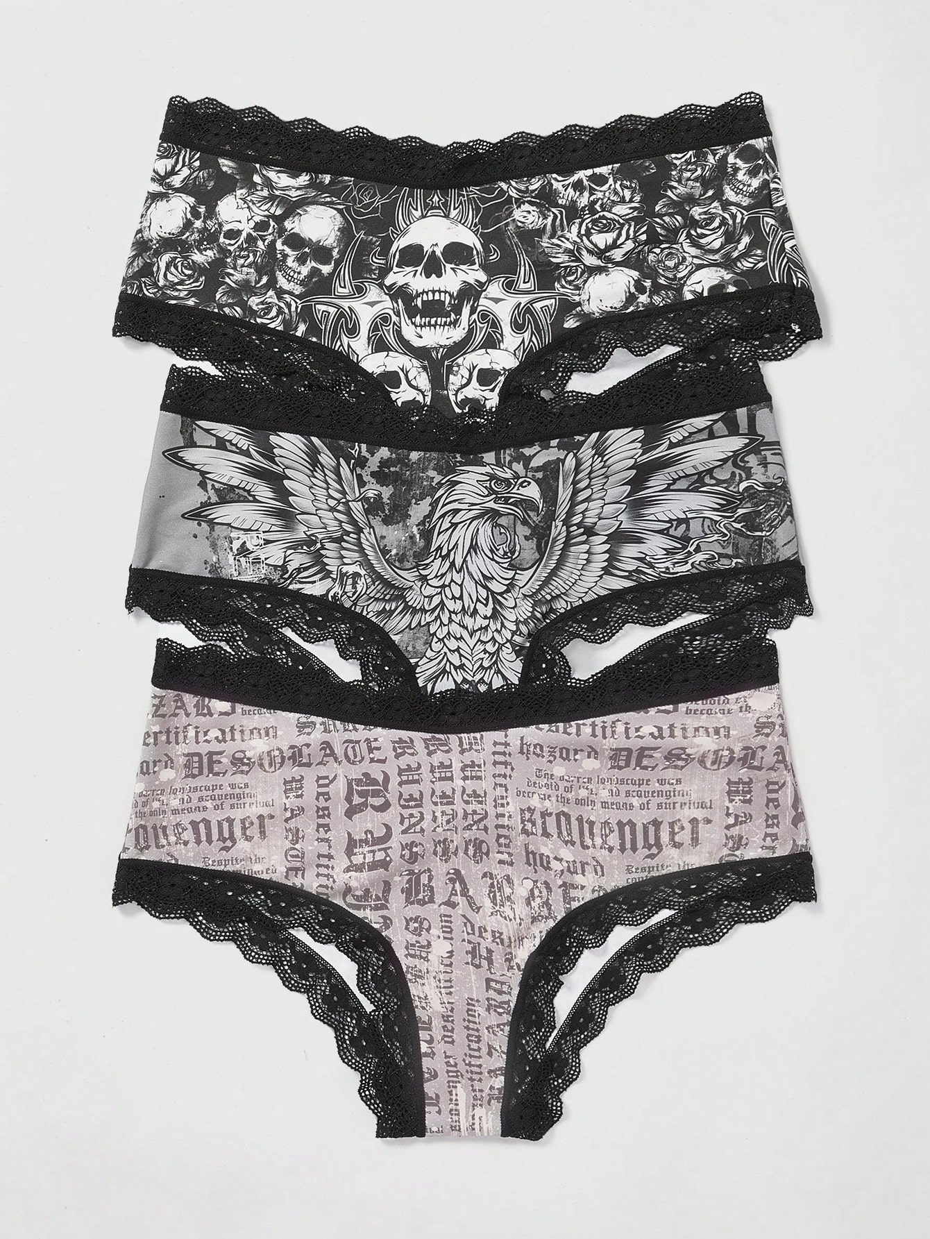 Grunge Punk 3 pezzi Brief teschio & con grafica aquila & slogan merletto