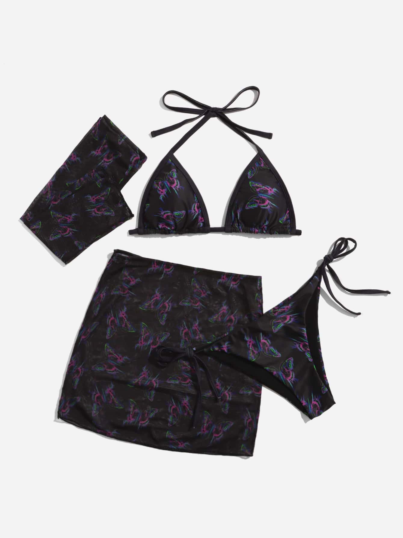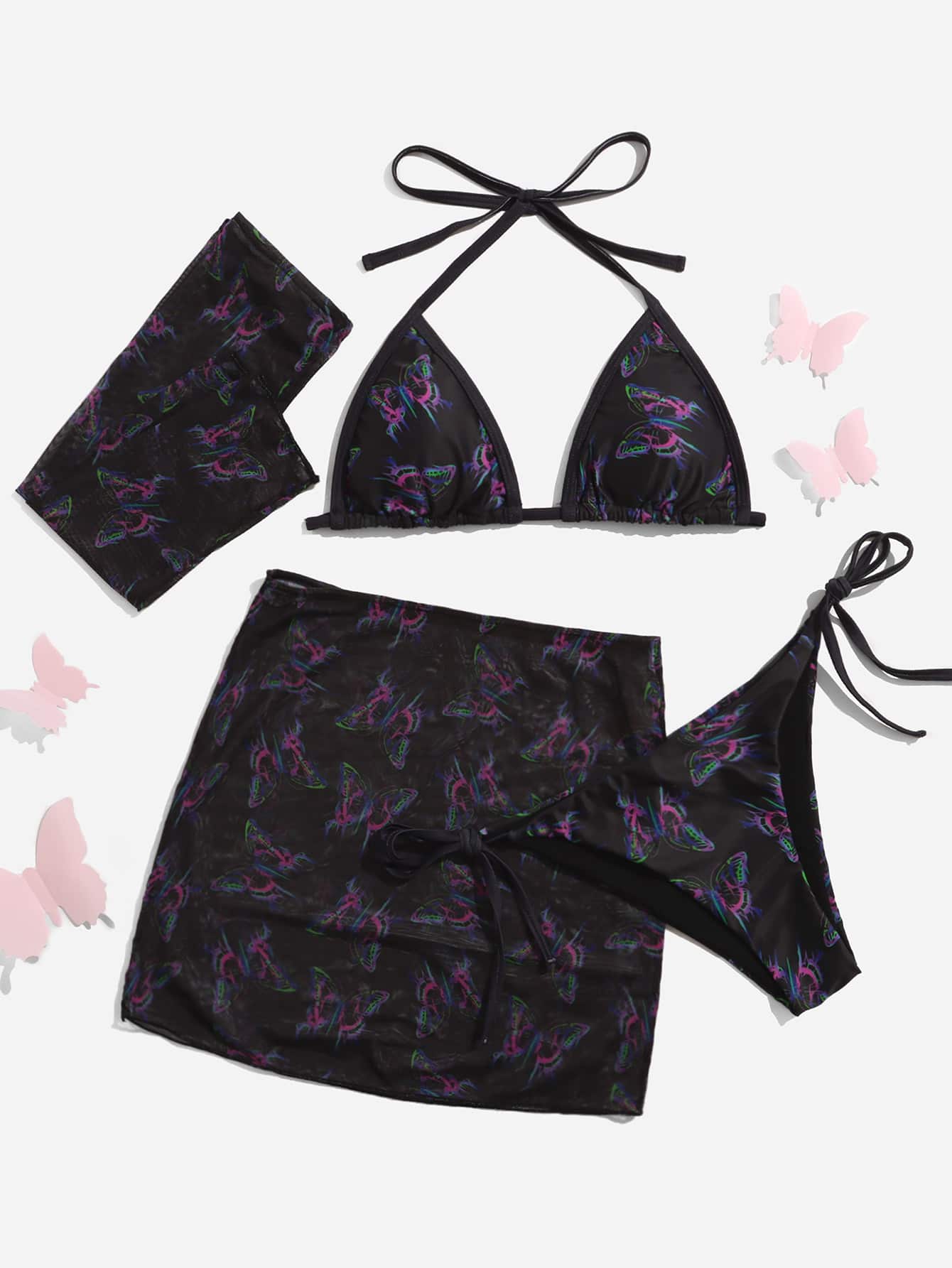 Grunge Punk Confezione Da 4 Pezzi Di Bikini Allamericana E Gonna Da Spiaggia Con Stampa Di Farfalle