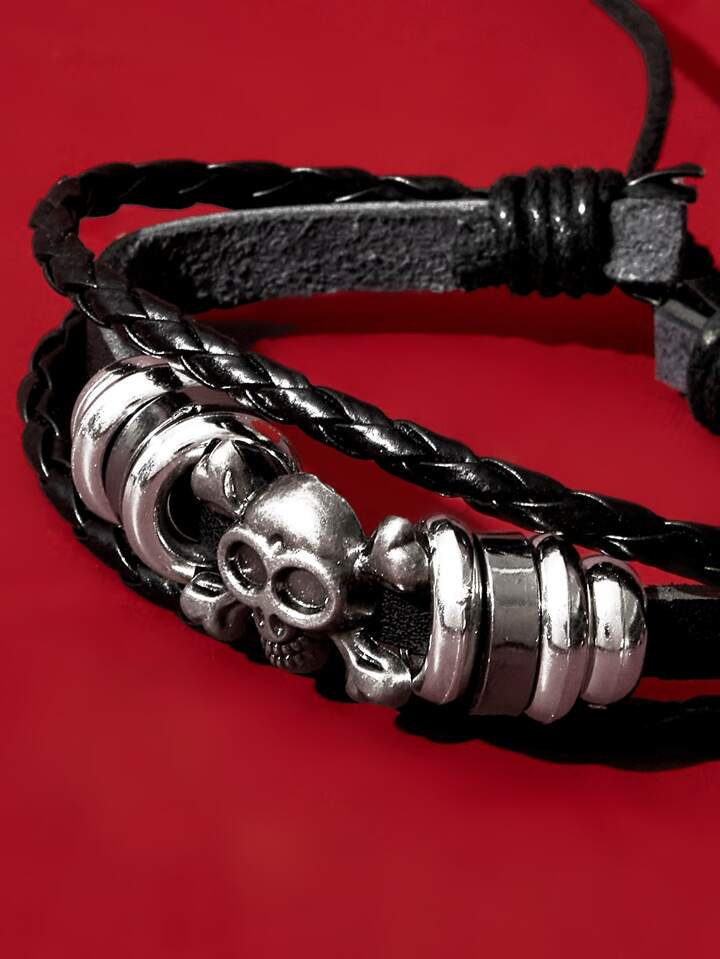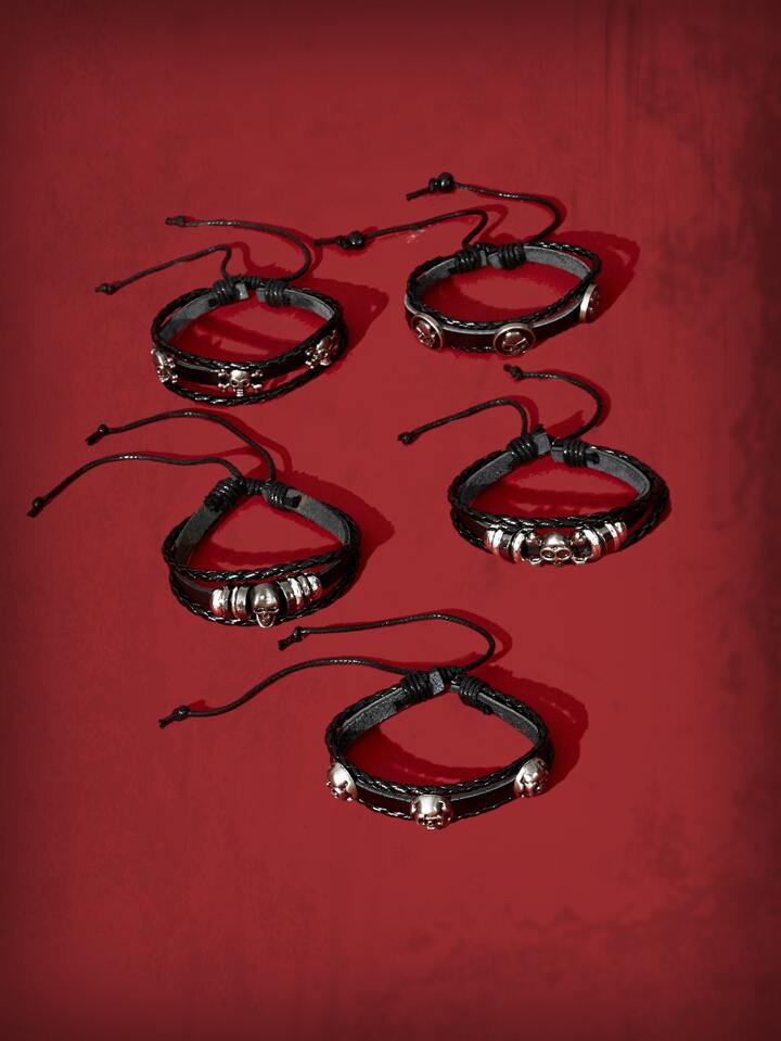 Grunge Punk 5 pezzi/set Braccialetti decorato teschio dettaglio intrecciato