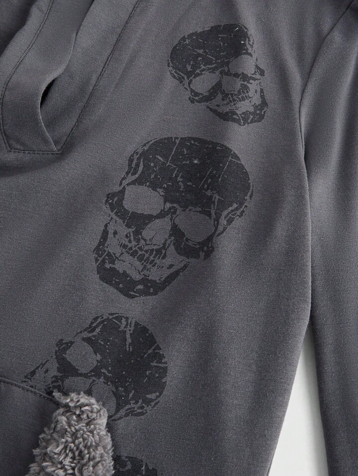 Grunge Punk Felpa con cappuccio aderente, con stampa teschio, con fodera termica, stile punk, adatta per l'autunno/inverno da donna