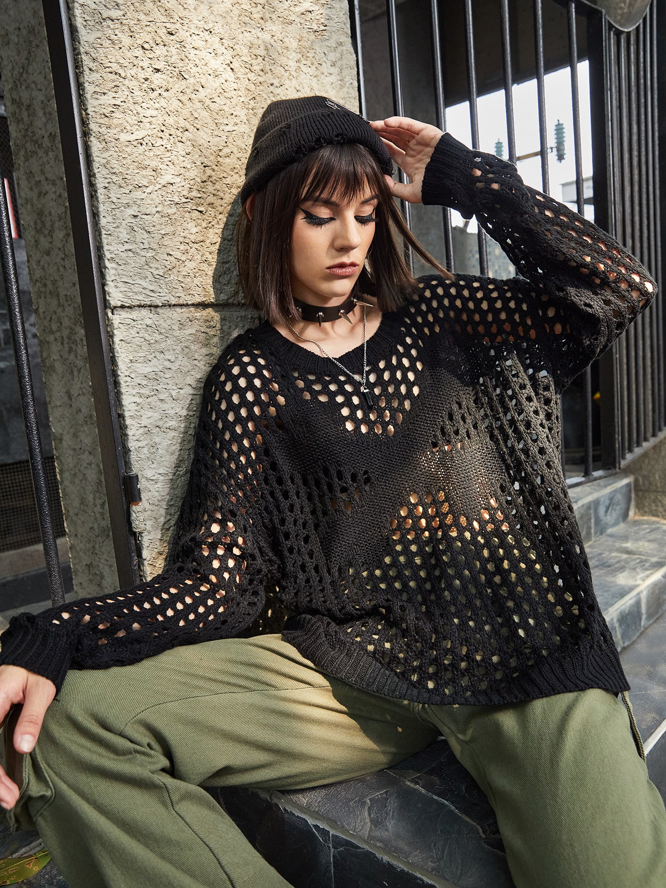 Grunge Punk Maglione osso motivo scavato