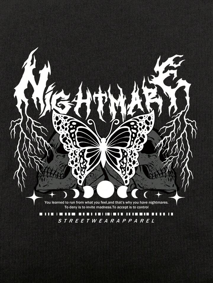 Grunge Punk Top Corto Con Stampa Farfalla E Slogan Per Donne