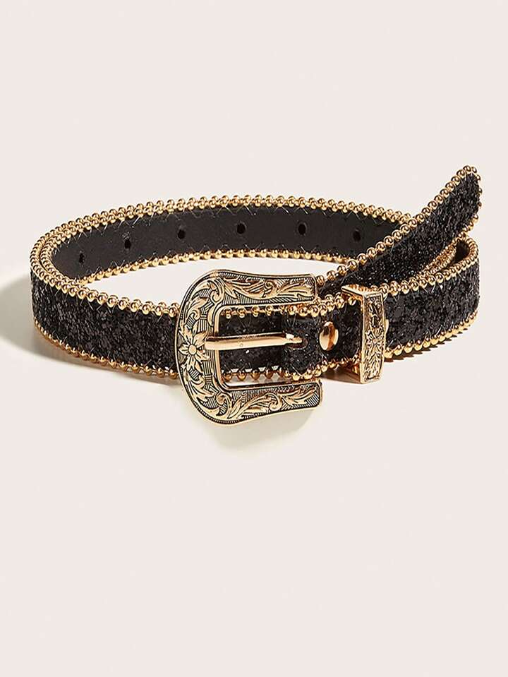Grunge Punk Cintura Vita Scintillante Con Fibbia Intagliata