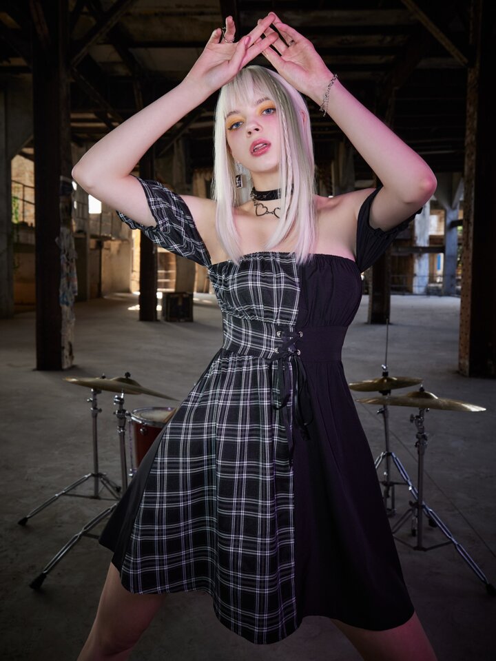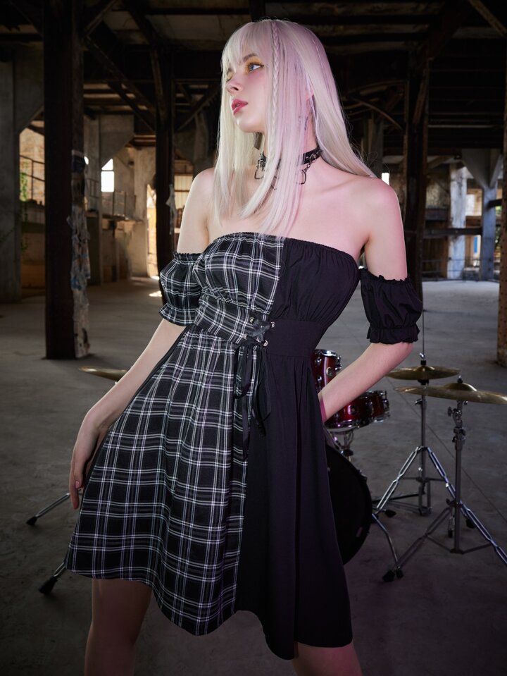 Grunge Punk Abiti color block a quadri con spalle scoperte