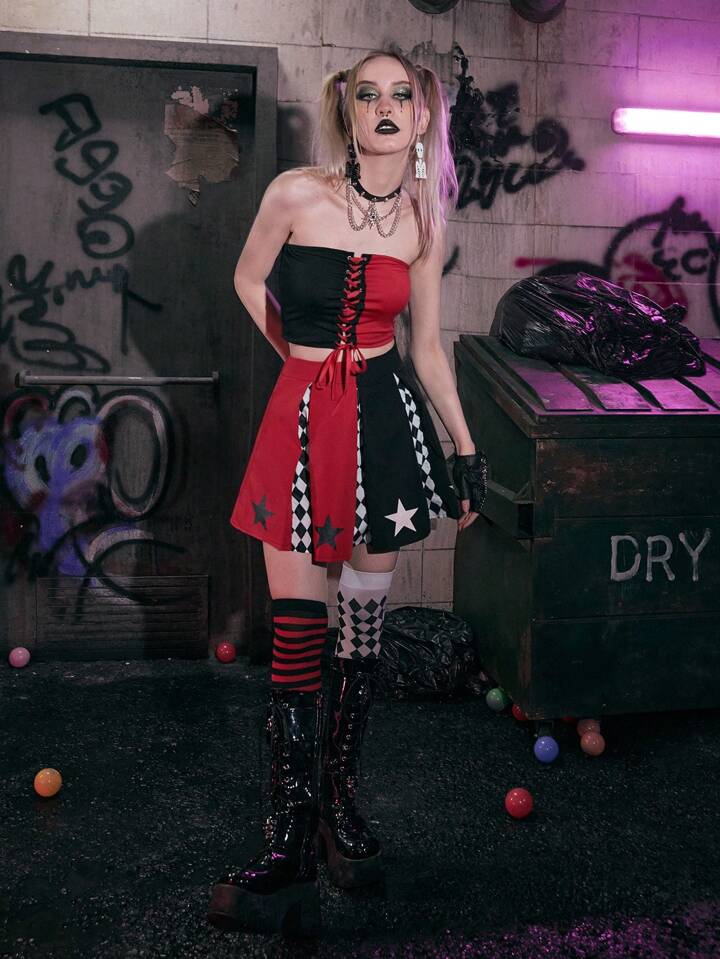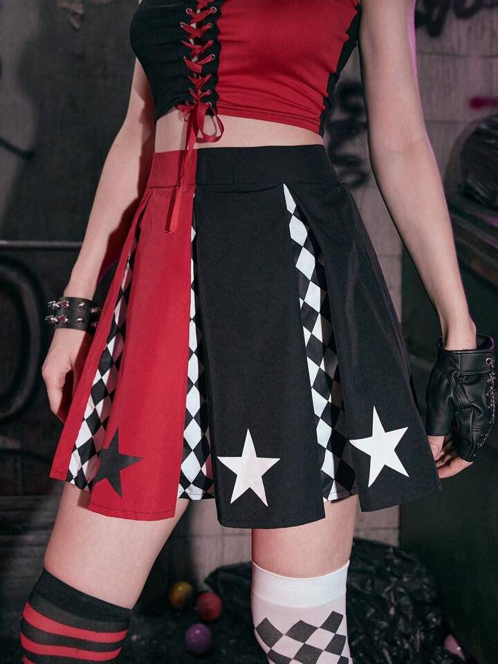 Grunge Punk Gonne color block con stampa stella