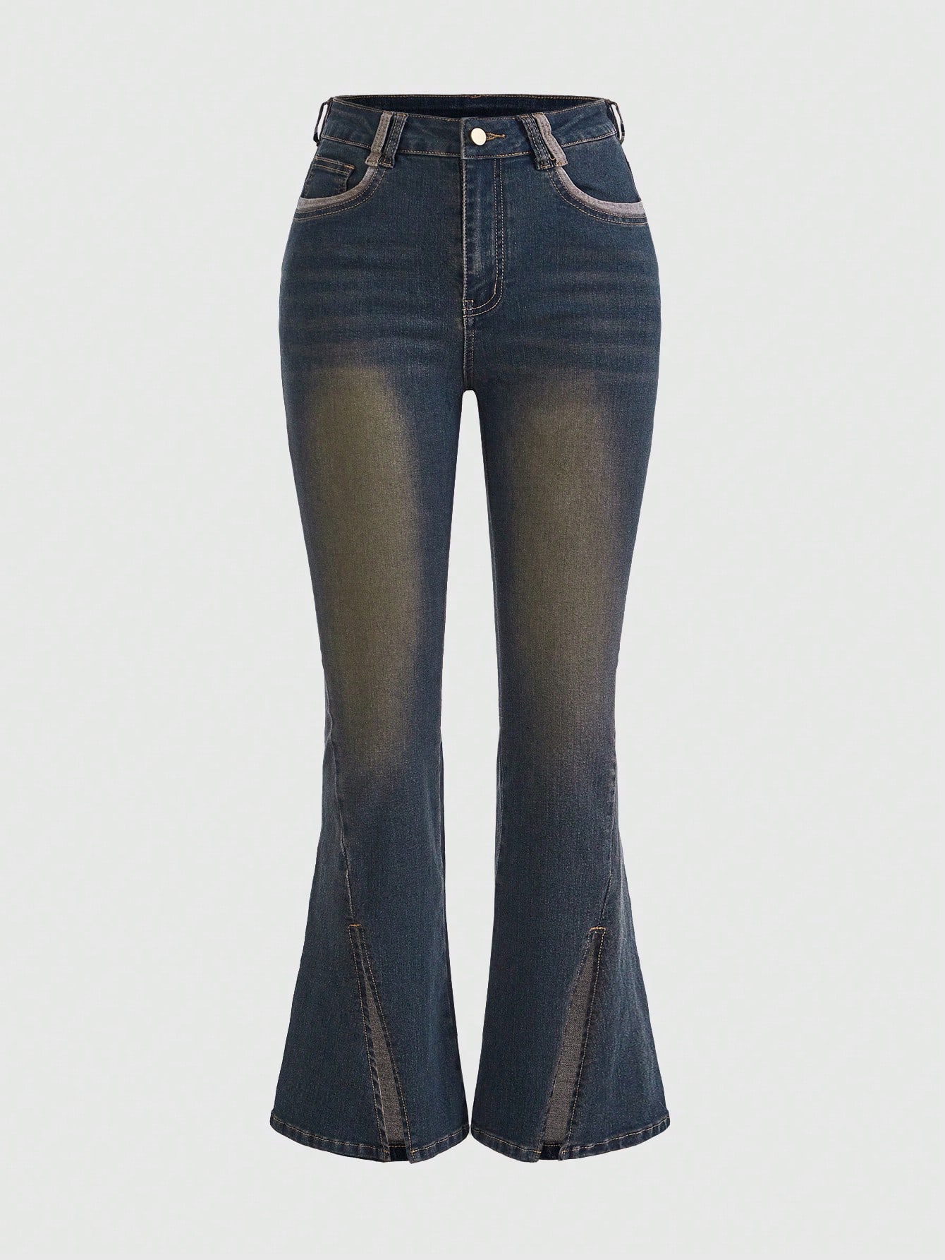 Grunge Punk Jeans a gamba svasata bordo a contrasto orlo a fessura