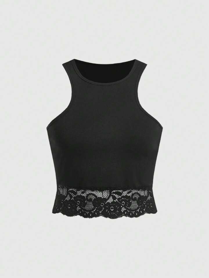 Grunge Punk Top con pizzo a contrasto