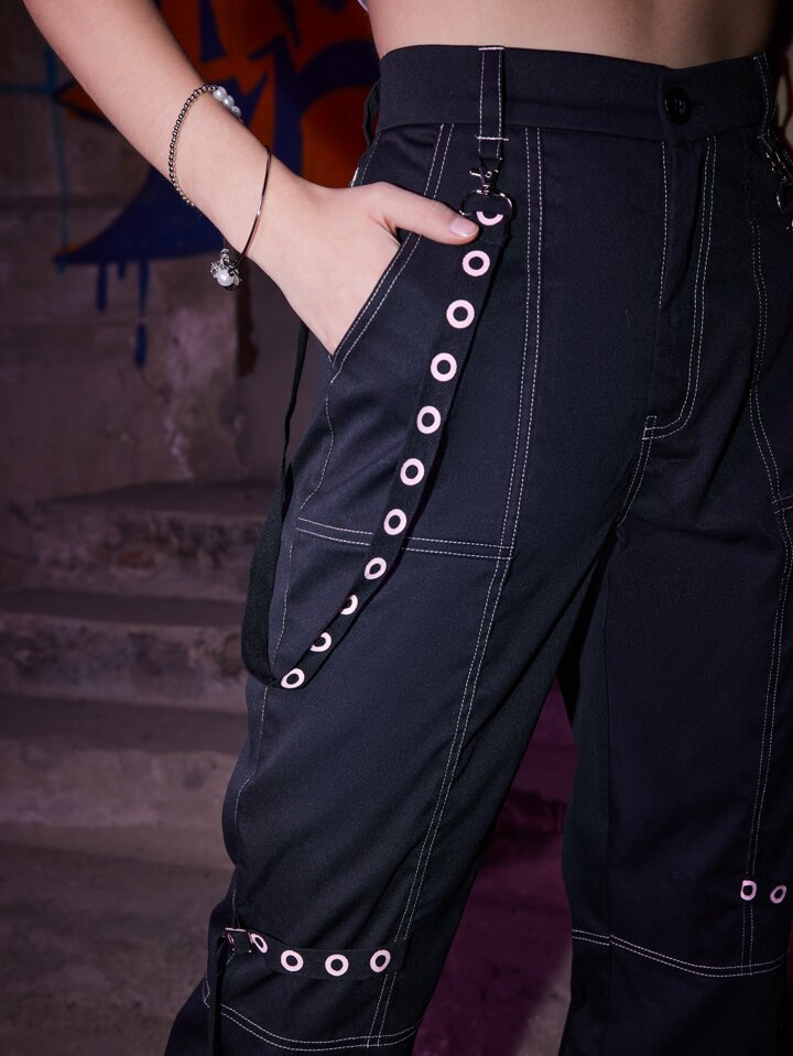 Grunge Punk Pantaloni cucitura a contrasto nastro