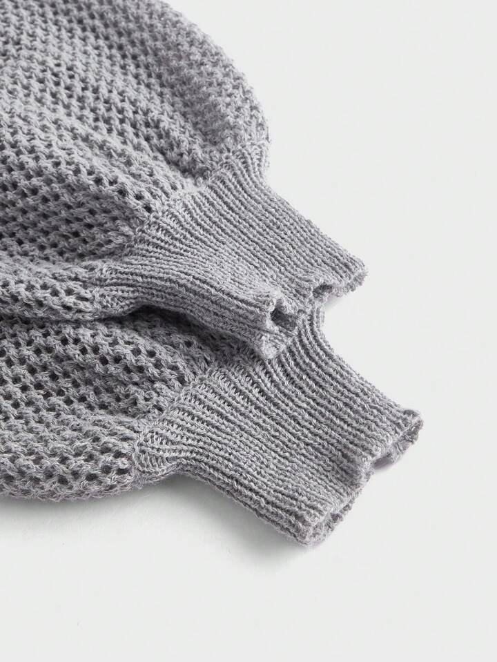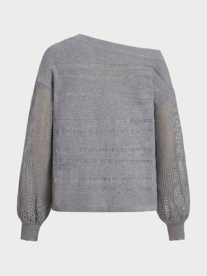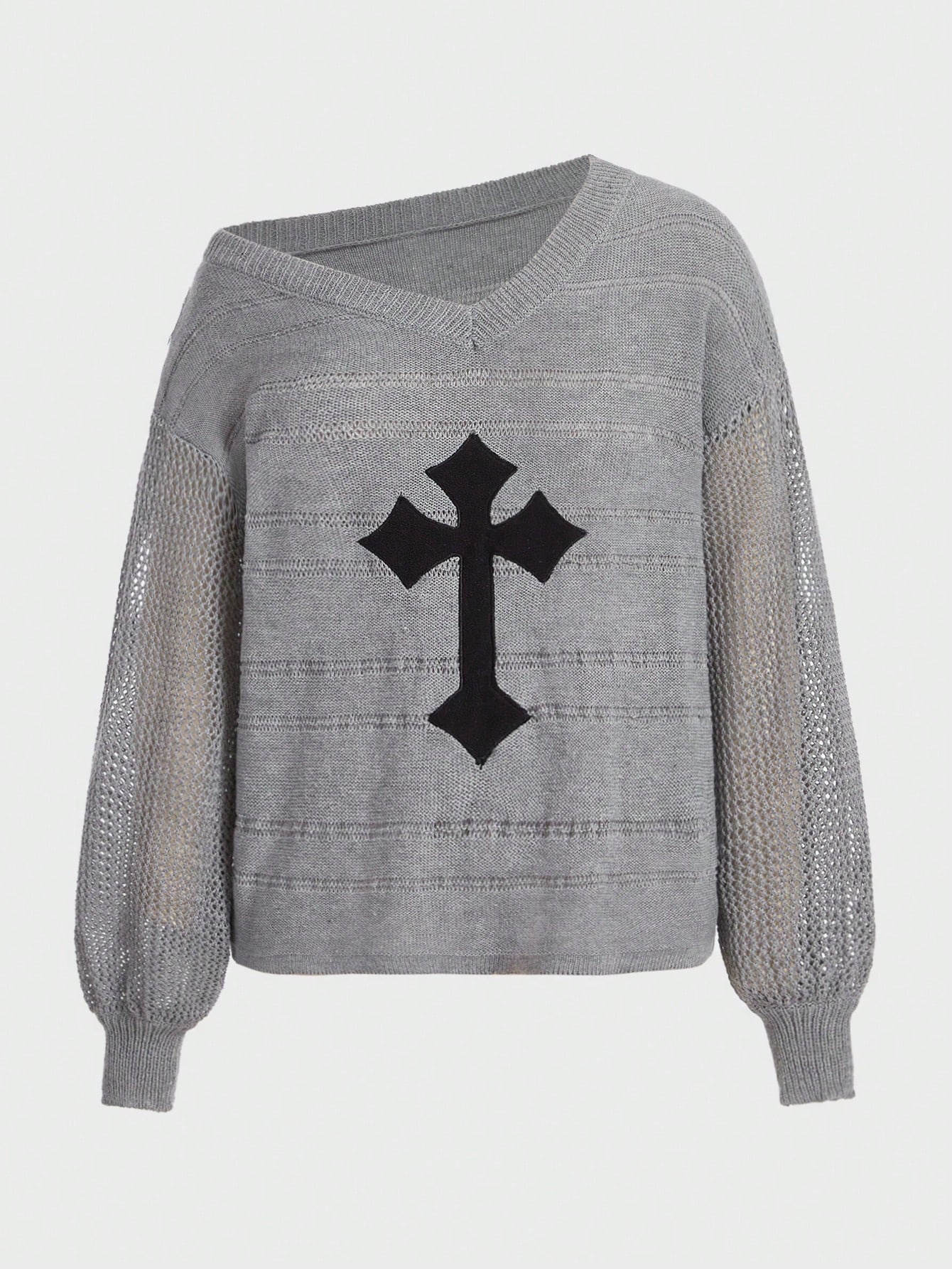 Grunge Punk Maglione con stampa croce manica a sbuffo in maglia pointelle