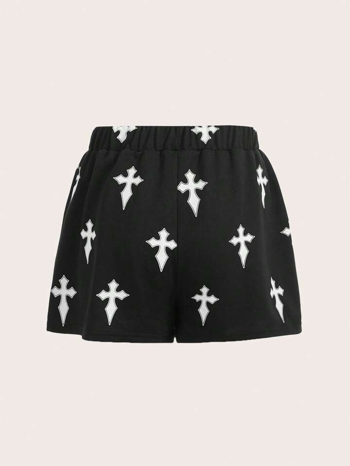 Grunge Punk Shorts incrociato stampa con coulisse a vita