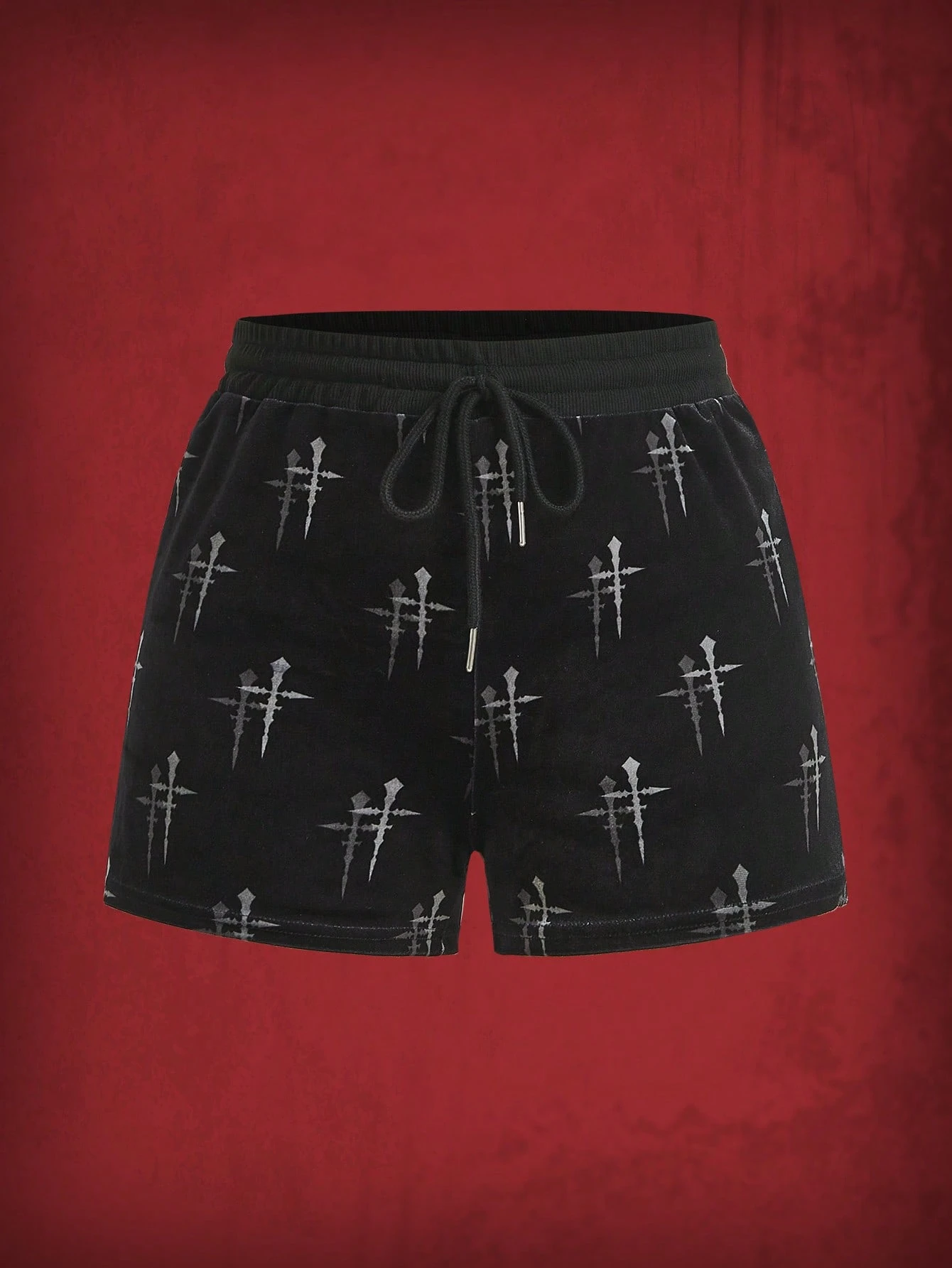 Grunge Punk Shorts incrociato stampa con coulisse a vita