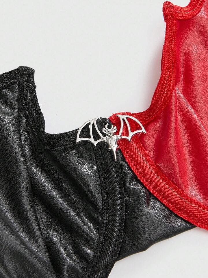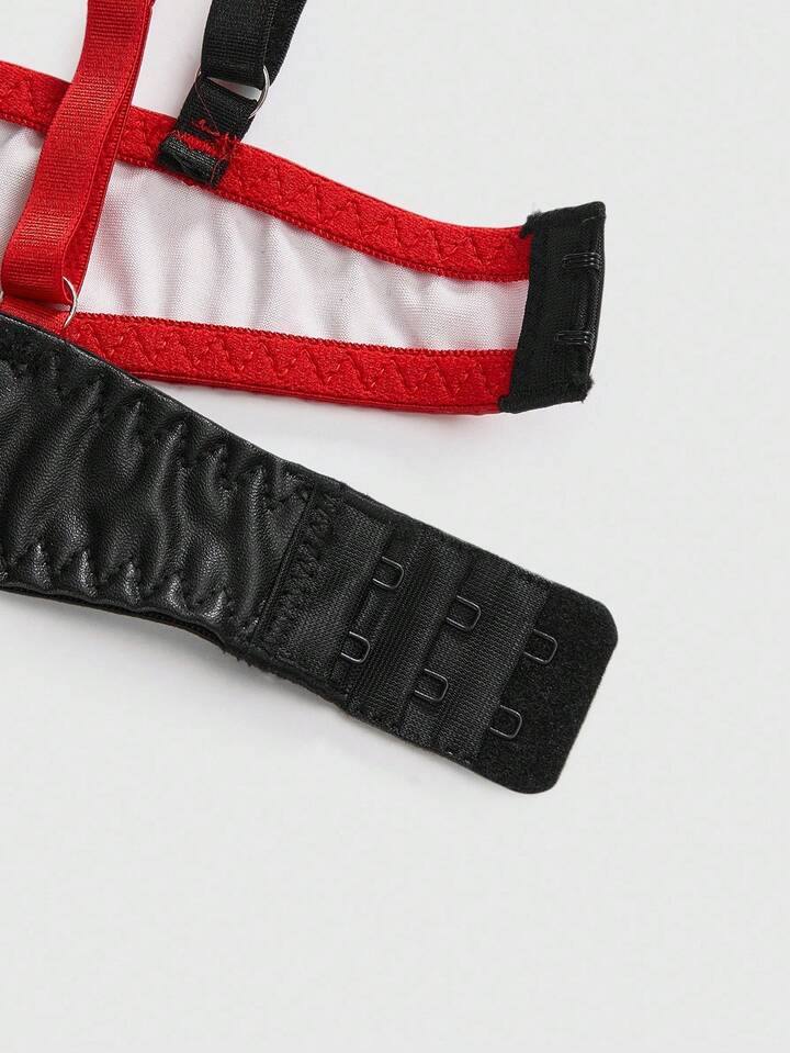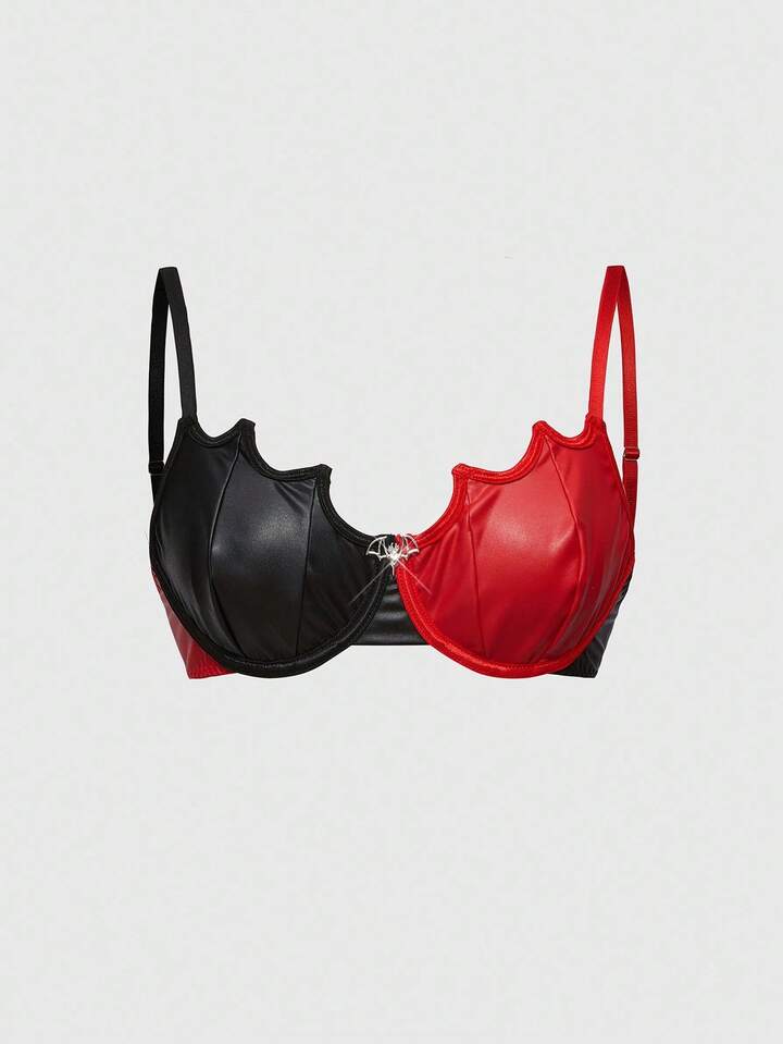 Grunge Punk Reggiseno a triangolo con imbottitura in pelliccia, stile punk dark, con fibbia metallica a forma di cuore