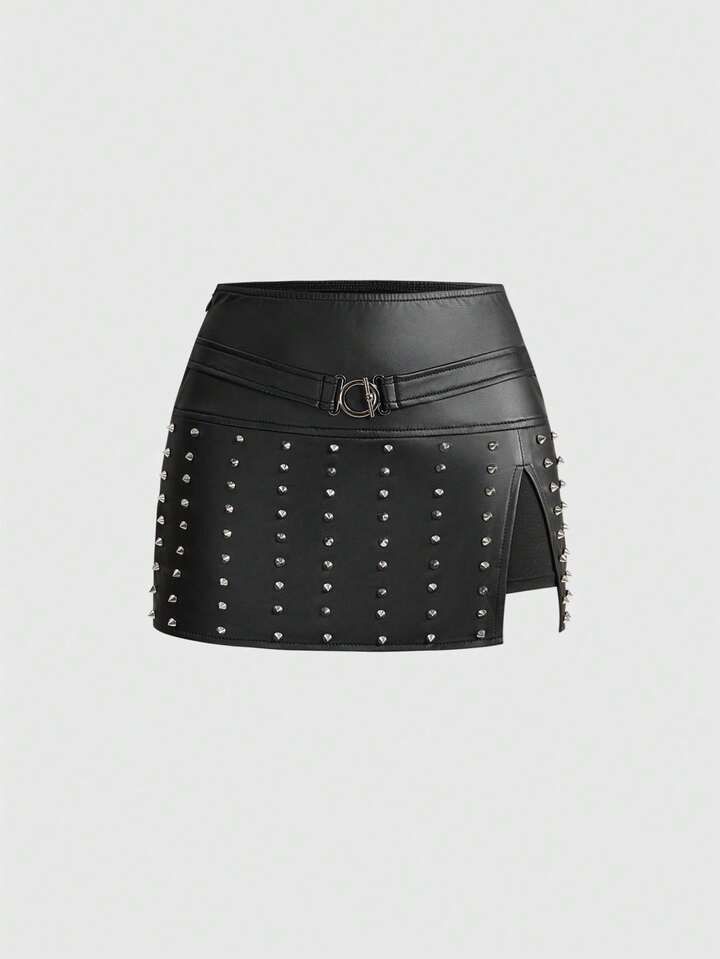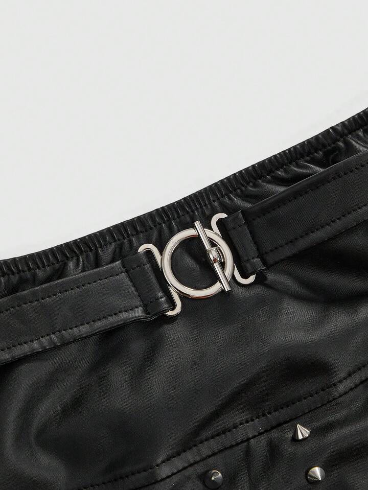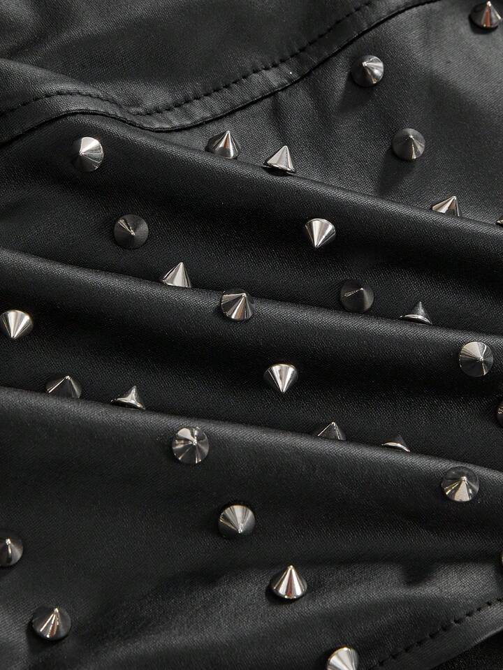 Gonna mini in pelle sintetica stile punk, con rivetti e patchwork, stile punk dark