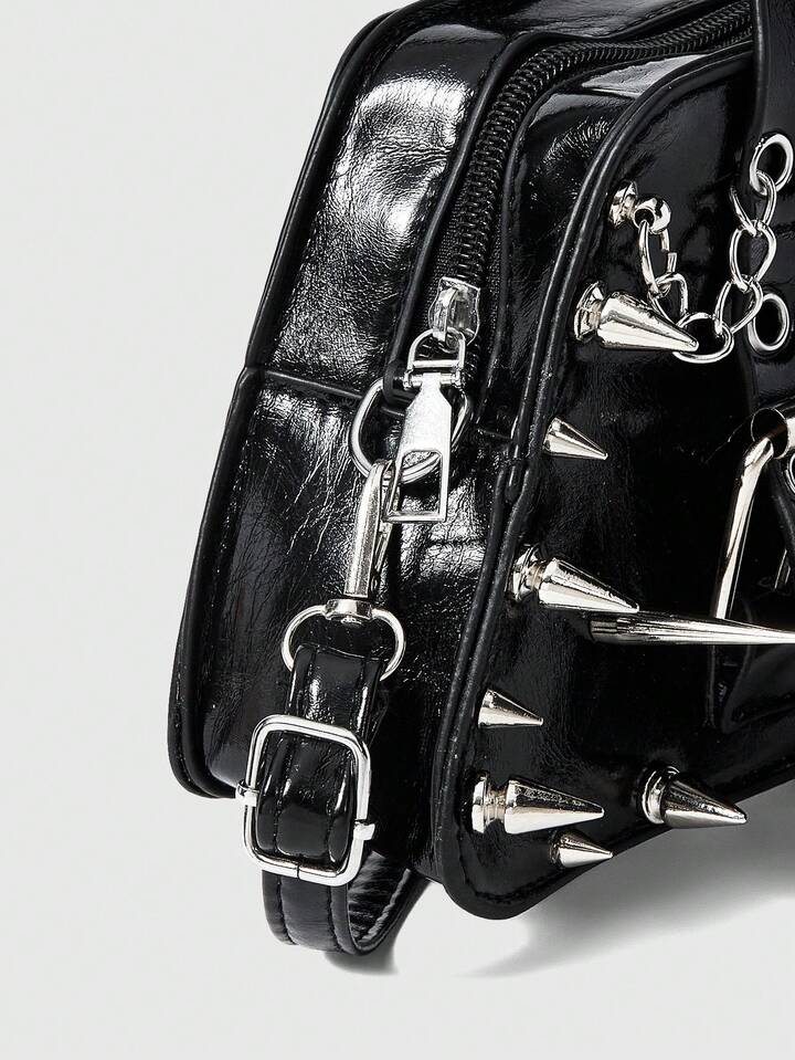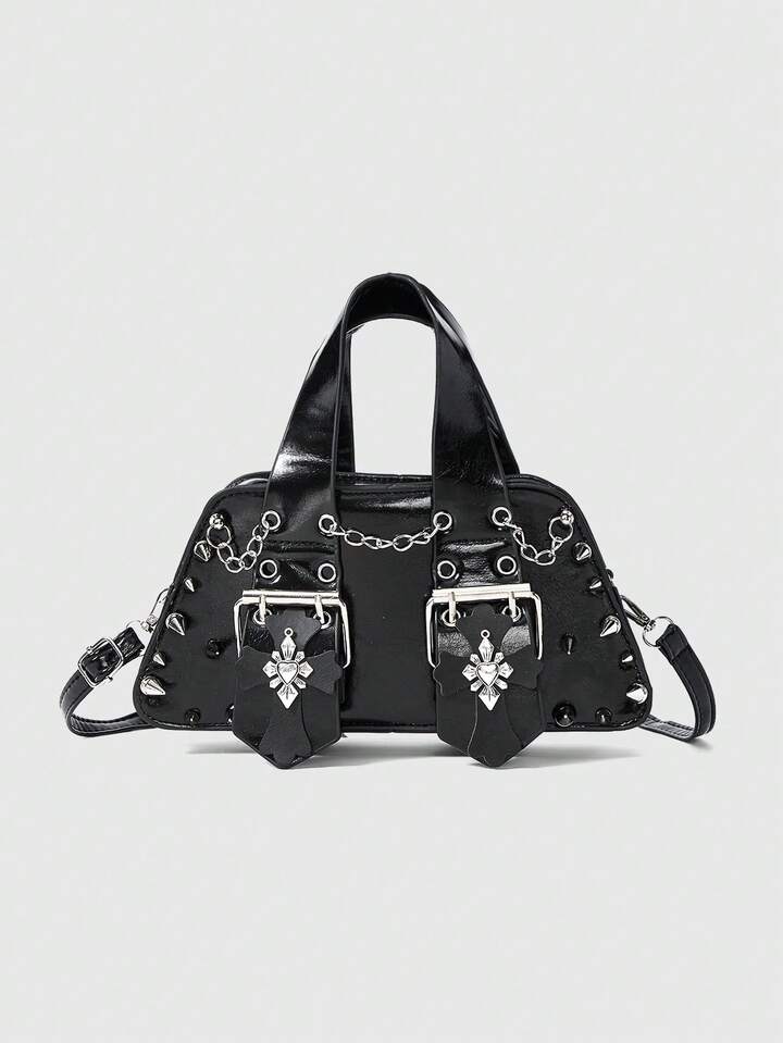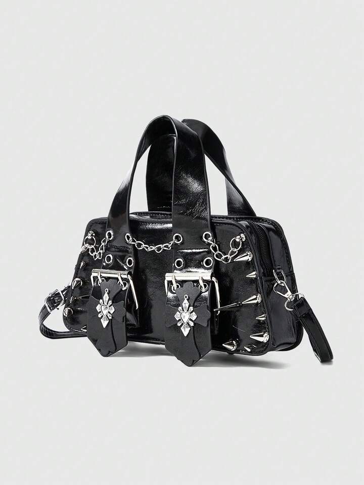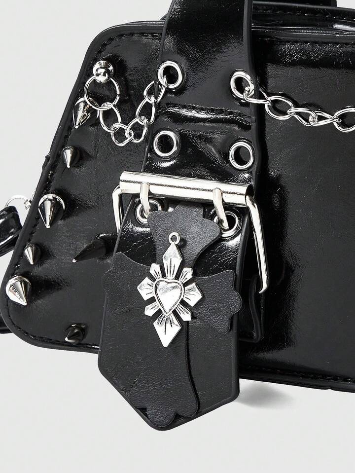 Grunge Punk Borsa stile punk scuro con decorazione a croce, elementi di catena e borchie, design di nicchia cool e alla moda, borsa ideale per attirare gli sguardi per strada