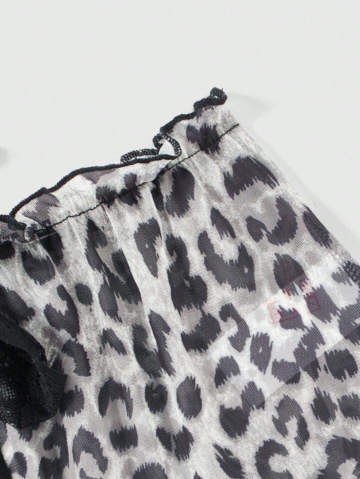 Grunge Punk Set di pigiama con top senza maniche e pantaloncini con orlo in pizzo, stampa leopardata in rete, stile punk scuro, per la scuola