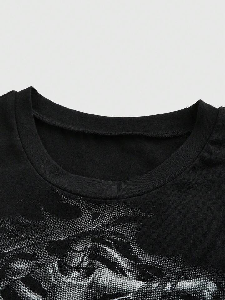 Grunge Punk Maglietta basic da donna con design semplice e versatile, stile punk oscuro, stile Wasteland, con teschio e scheletro usurati, adatta per la scuola