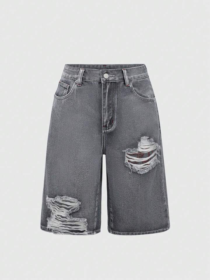 Grunge Punk Pantaloncini di jeans con ricamo a croce