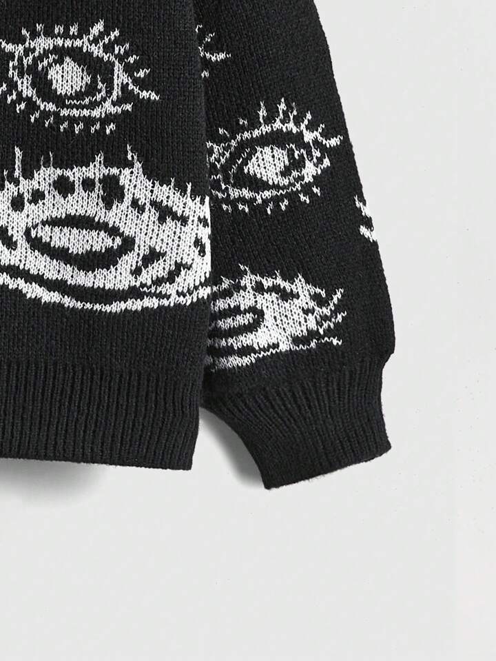 Grunge Punk Maglione con modello dell'occhio spalle cadenti