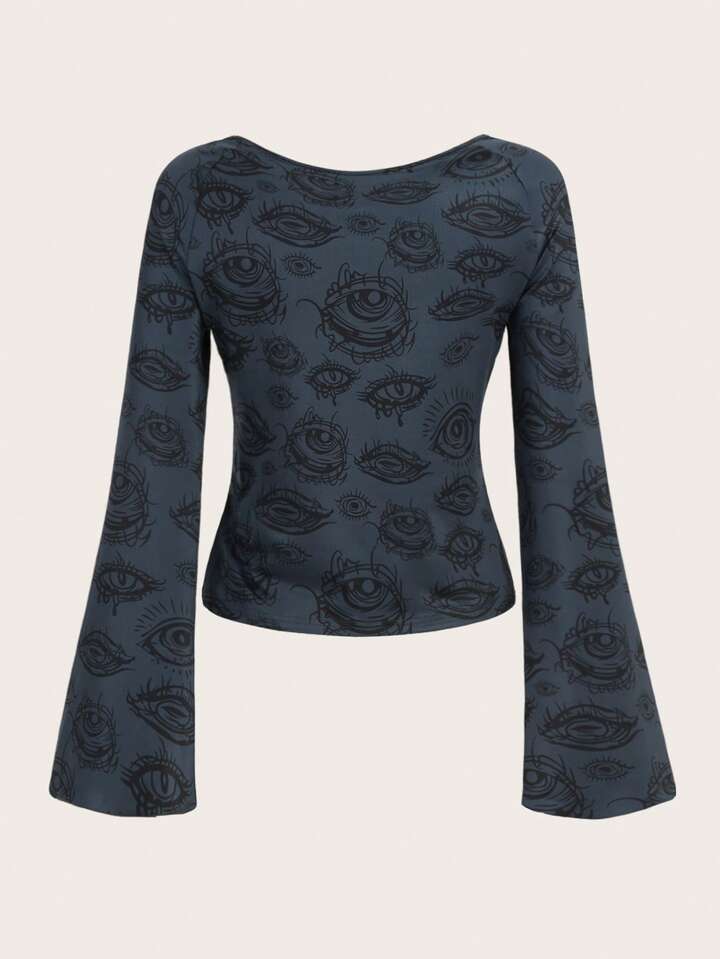 Grunge Punk Maglietta con stampa occhi