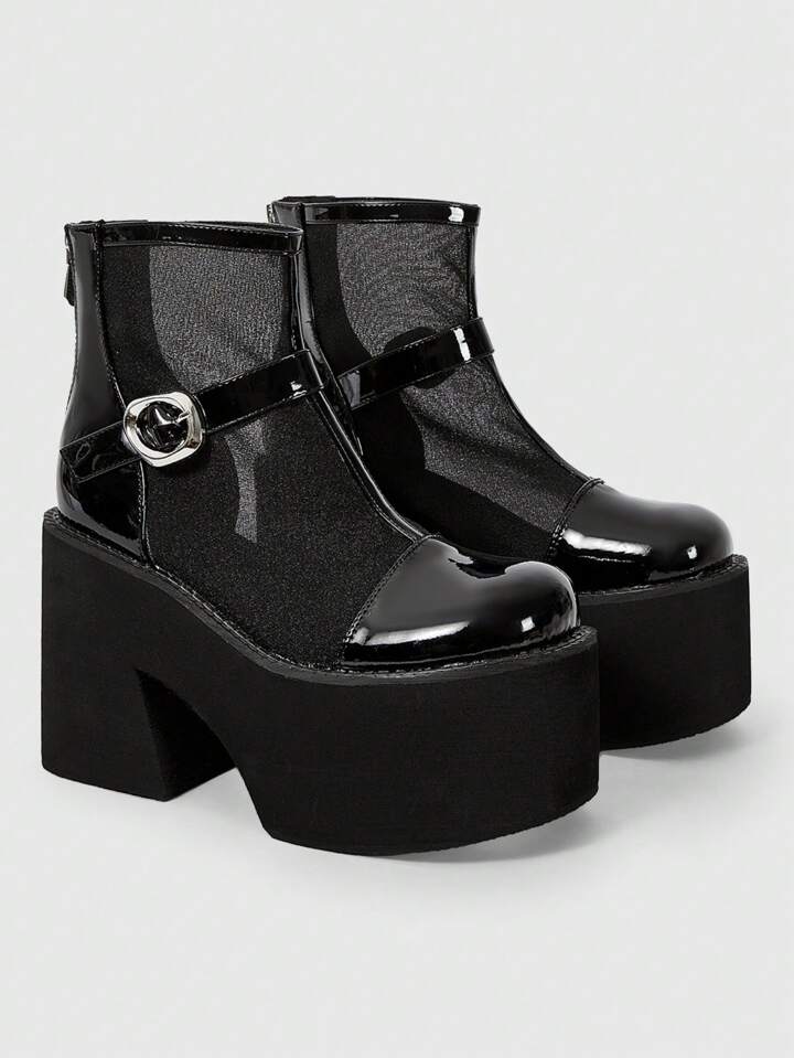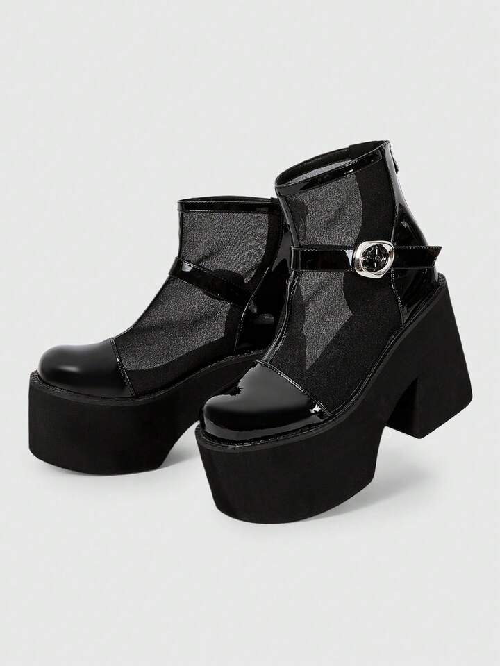 Grunge Punk Sandali alla moda da donna con tacco alto, suola spessa e design traforato