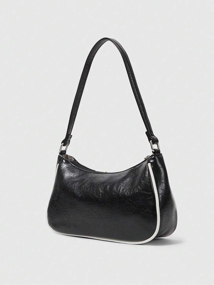 Grunge Punk Borsa a spalla di moda e versatile con blocchi di colore e toppe con lettera