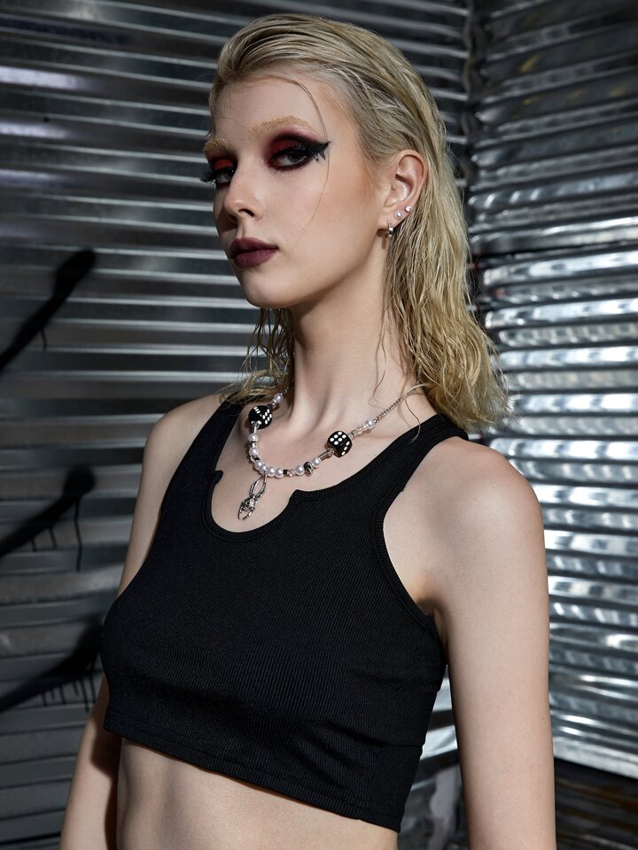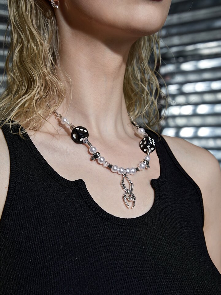 Grunge Punk Collana con ciondolo con perle & decorato teschio ragno