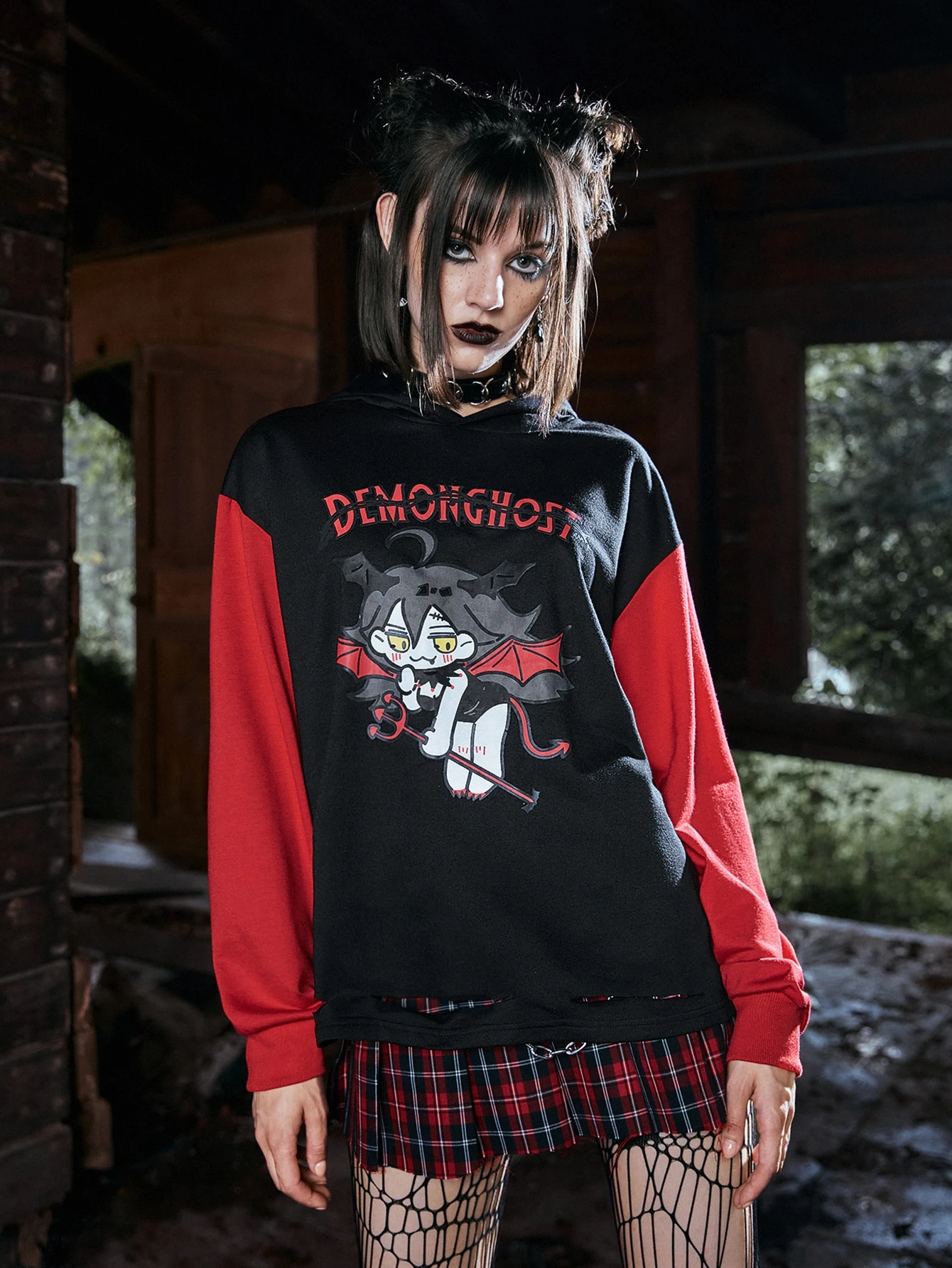 Grunge Punk Felpe con figure e lettera grafiche color block