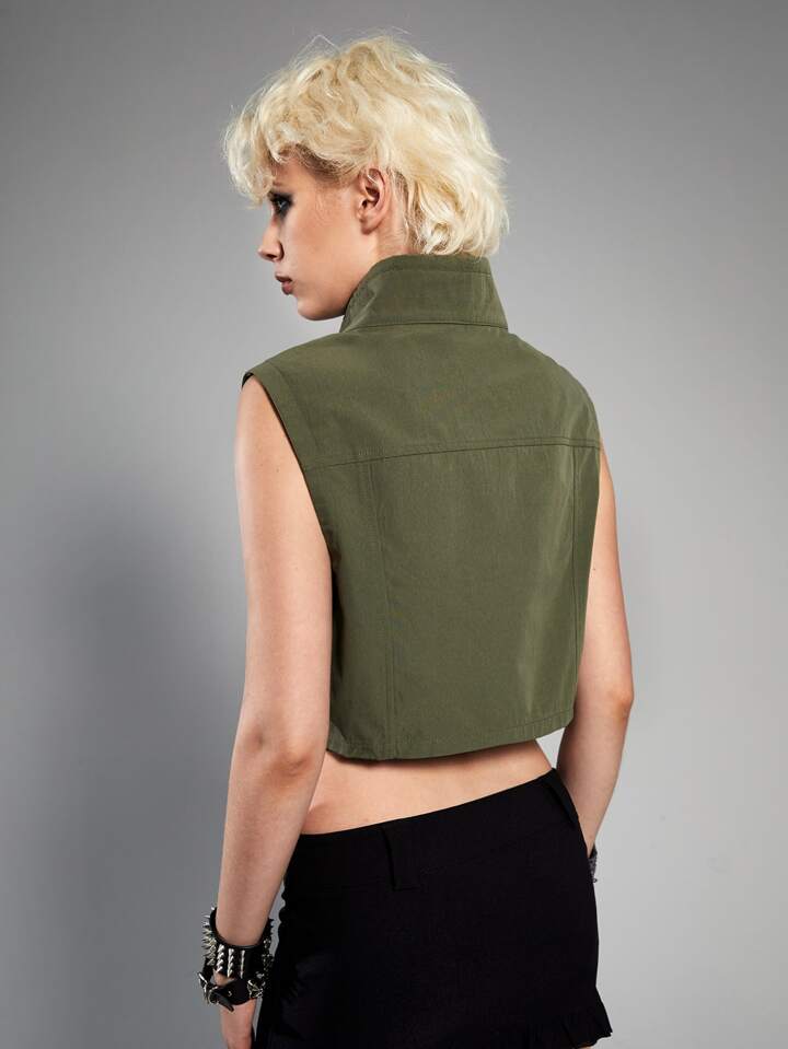 Grunge Punk Gilet giacca tasca con patta con zip