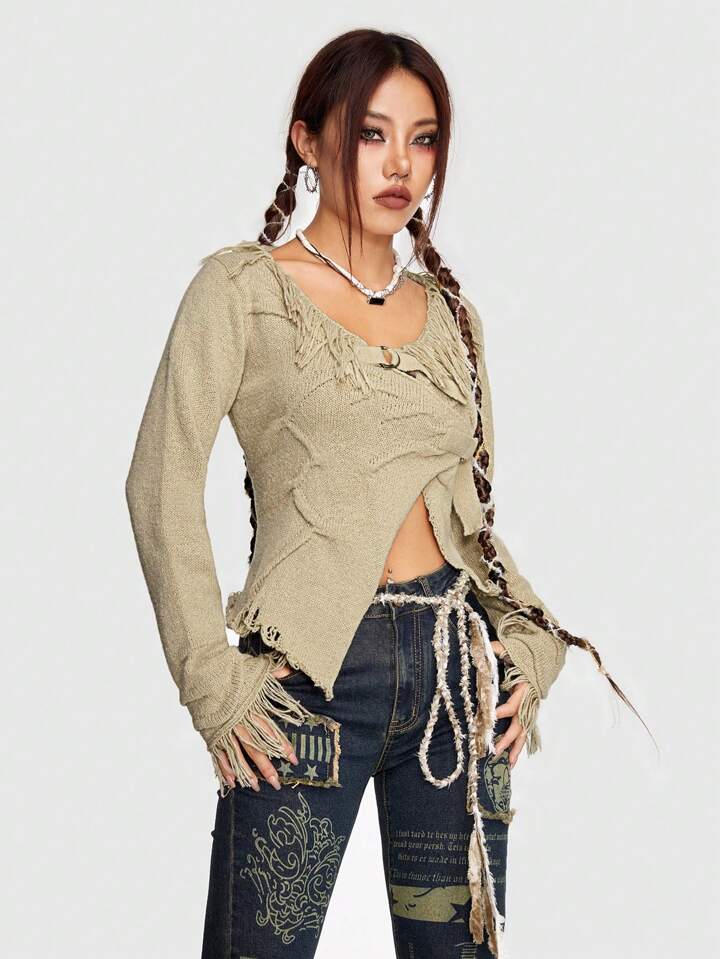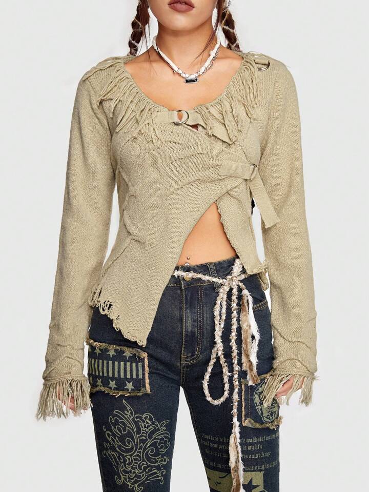 Grunge Punk Cardigan con frange contorto con fibbia laterale