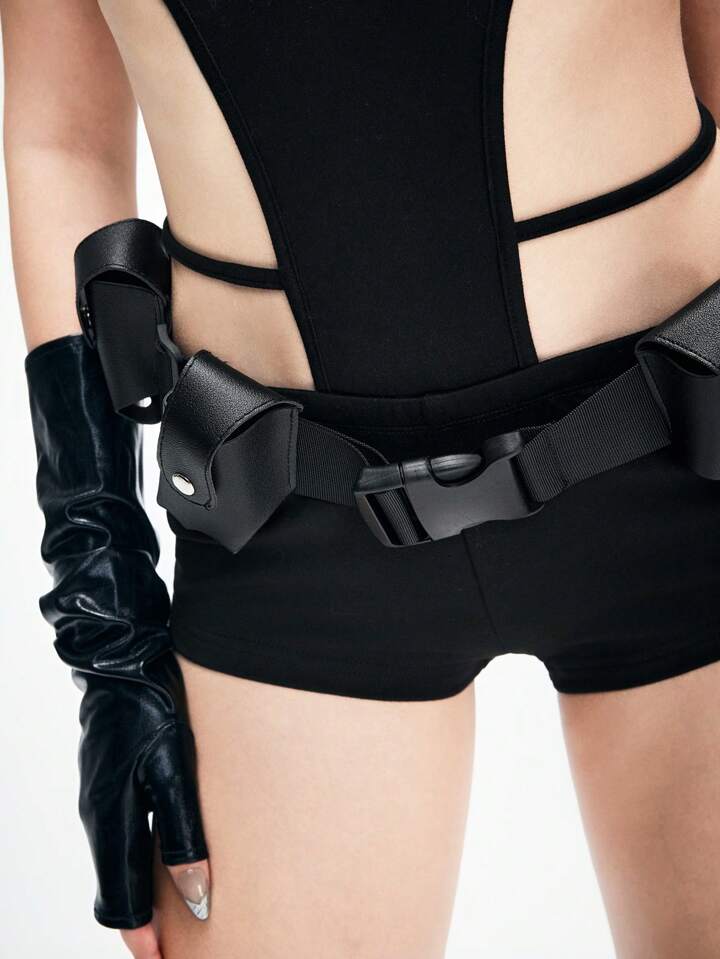 Grunge Punk Tuta futuristica da guerriera con taglio funzionale vita bassa, addome scoperto, tasche cargo e cintura