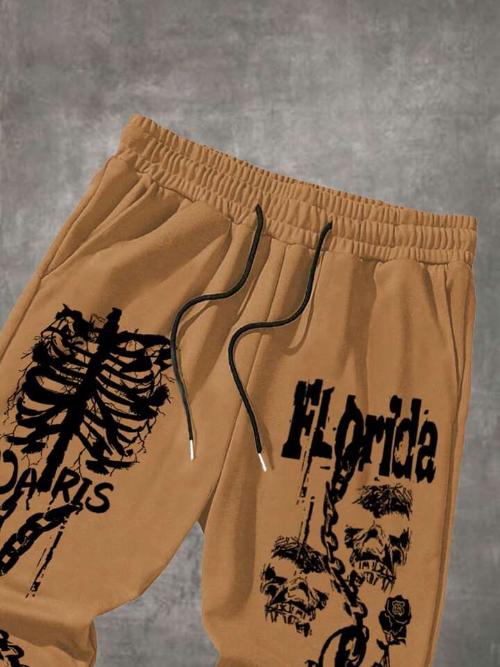 Grunge Punk Pantaloni Sportivi da Uomo Coulisse Tasca Nodo frontale Halloween Lettere