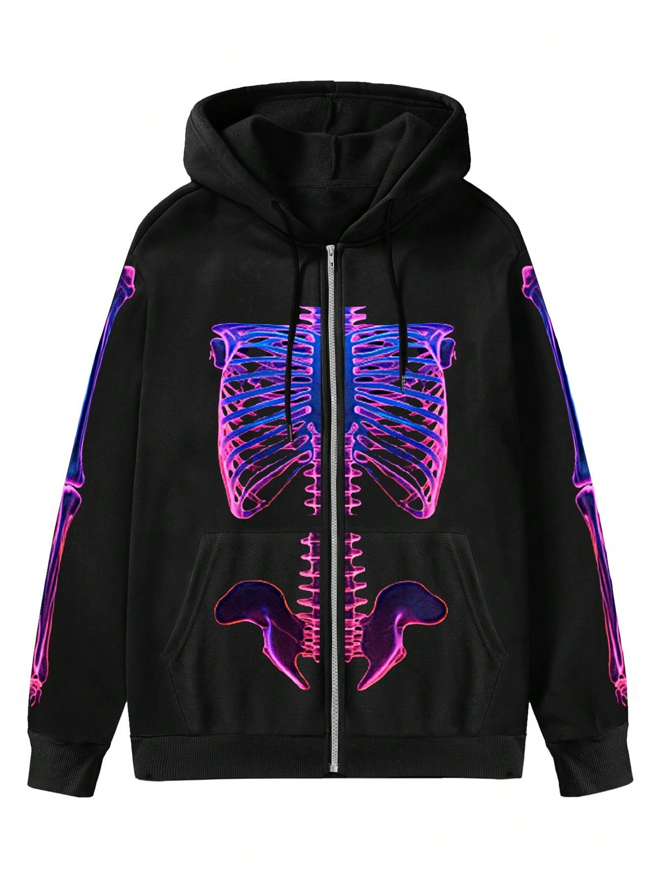Grunge Punk Ragazzi Felpa con cappuccio con stampa scheletri con zip con coulisse