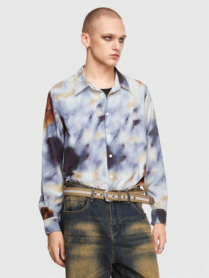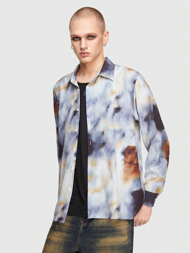 Grunge Punk Ragazzi Camicia tie dye con bottone