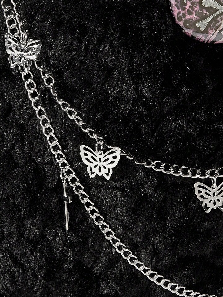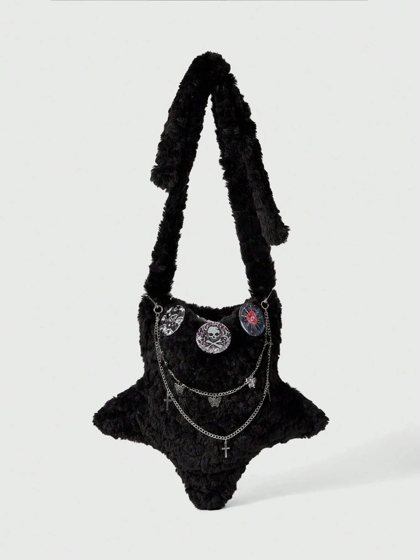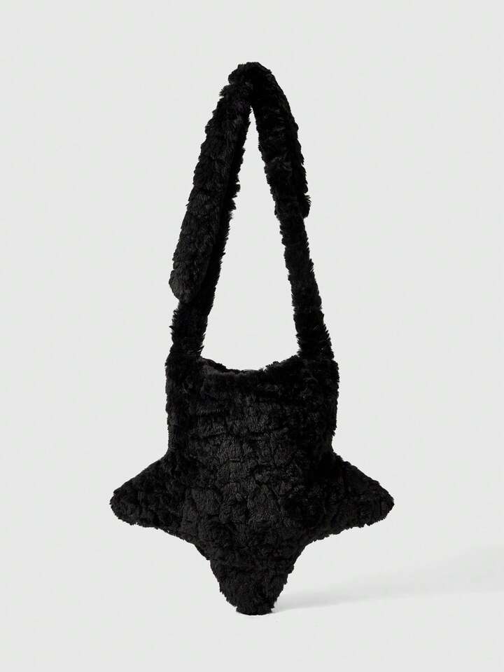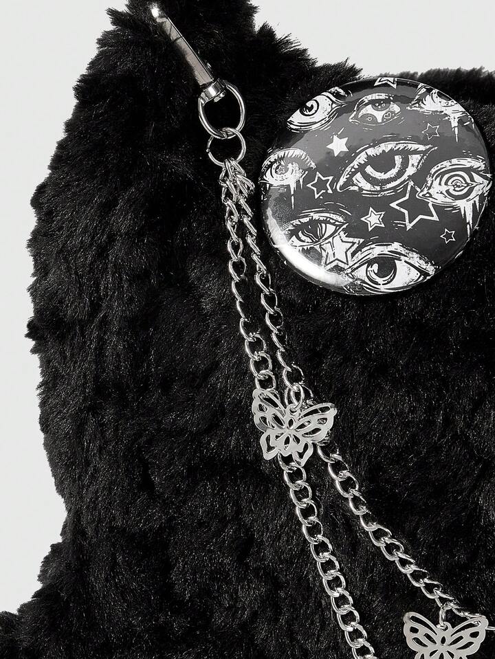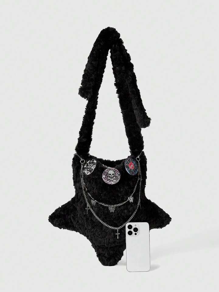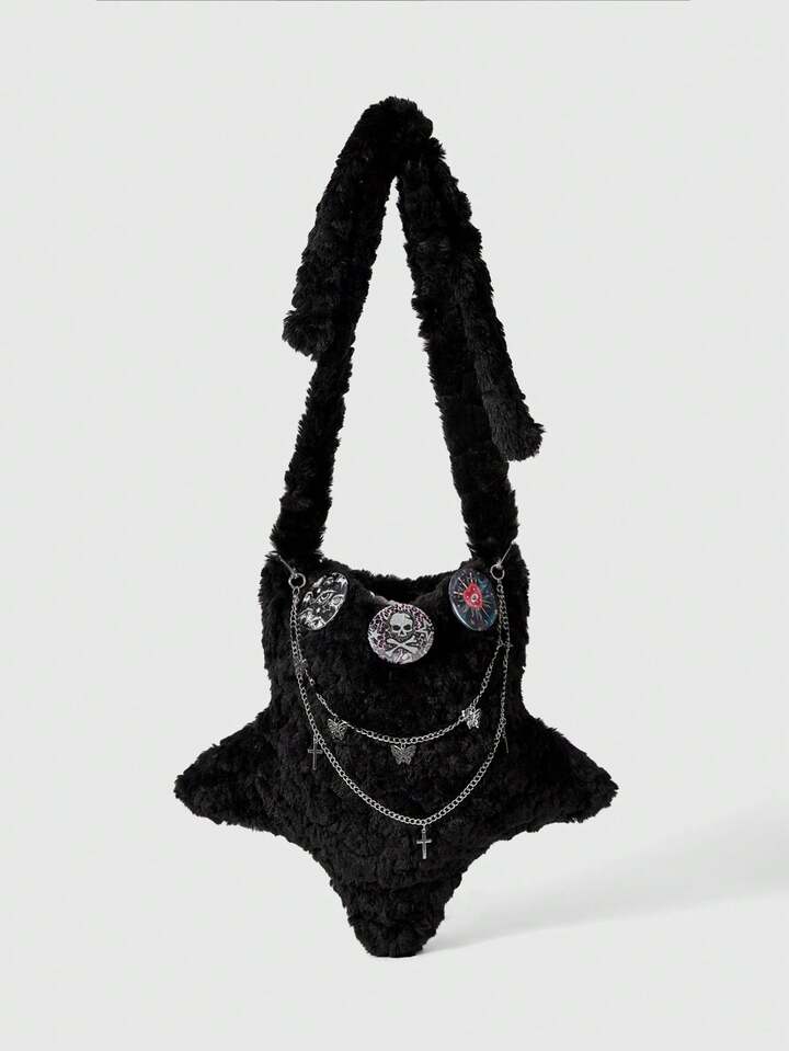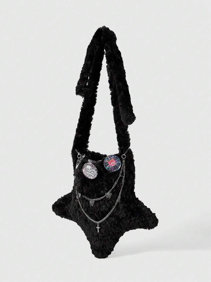 Grunge Punk Borsa a tracolla gotica in peluche con stelle, catena a croce e motivo ciclopico, stile punk Y2K, borsa a spalla morbida per donna, perfetta per feste in costume di Ognissanti, adatta per l'autunno/inverno