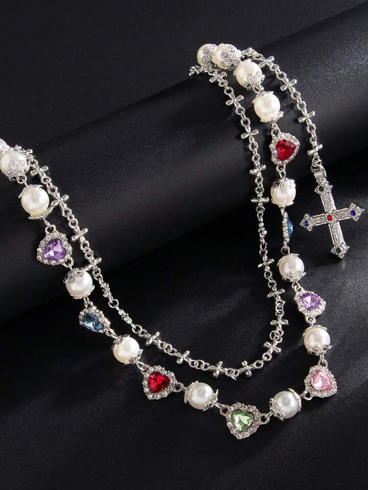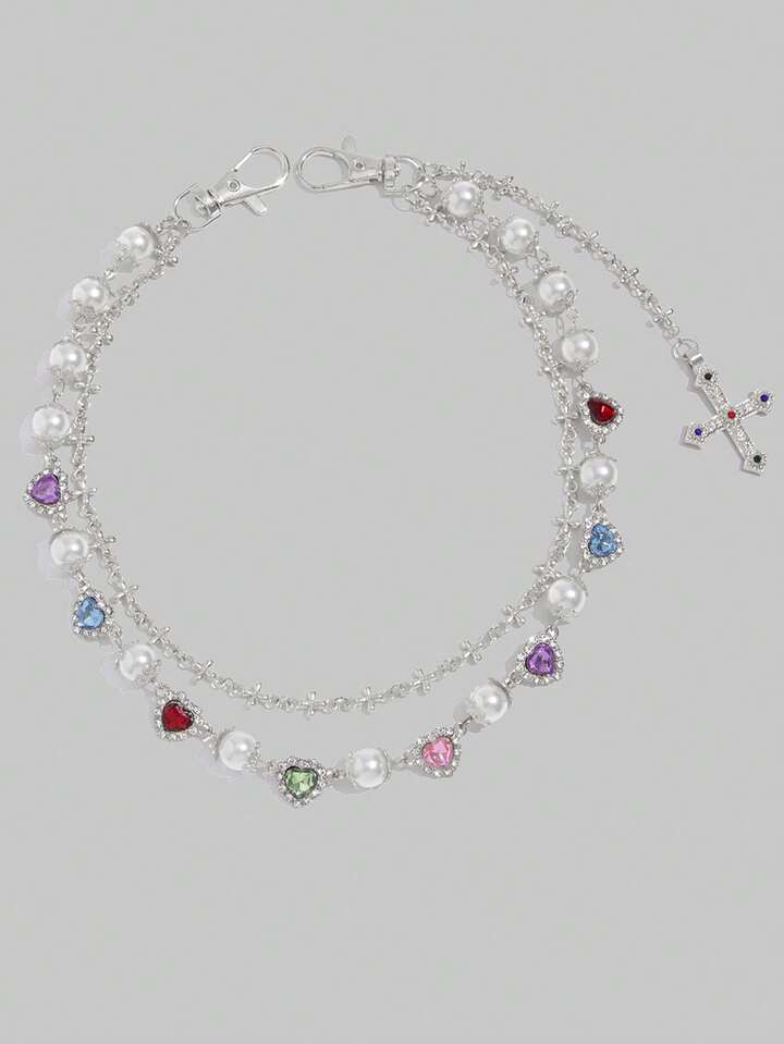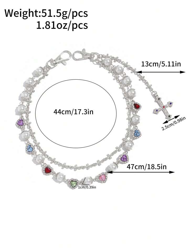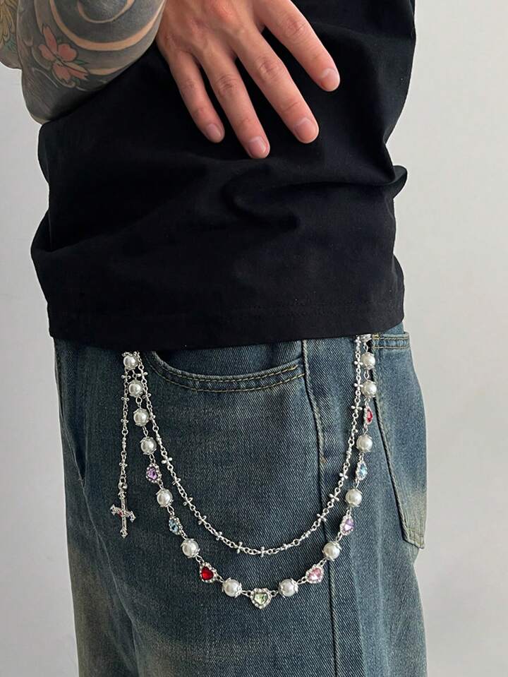 Grunge Punk Cintura a catena con decorazione a croce di cristallo in stile hip hop, con decorazione di perle finte