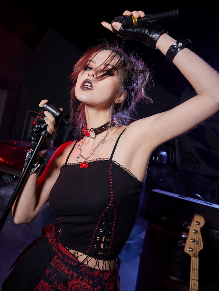 Grunge Punk Top con bretelle sottile lacci laterali