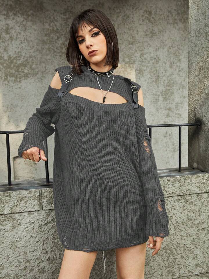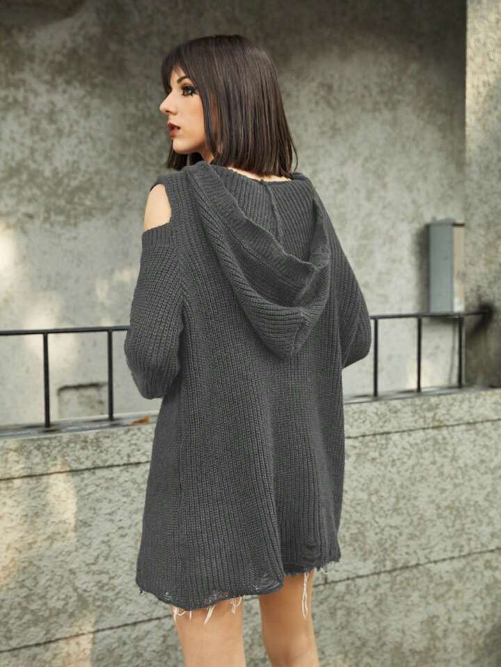 Grunge Punk Felpa Con Cappuccio A Maglia Vuota A Tinta Unita Per Donna
