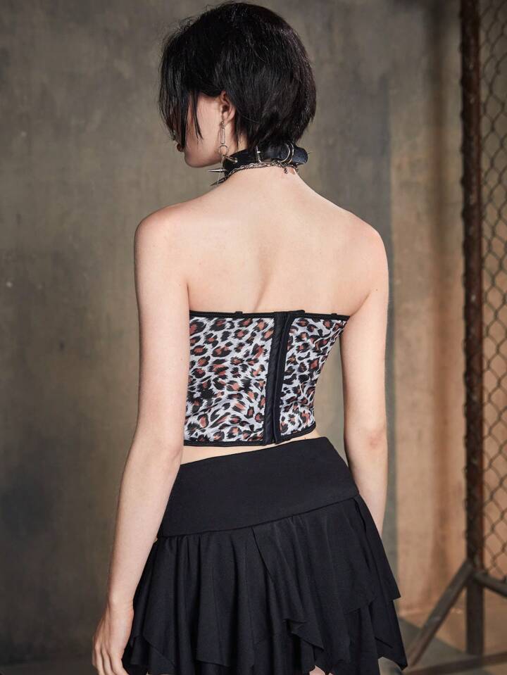 Grunge Punk Top tubo con stampa leopardo pizzo a contrasto