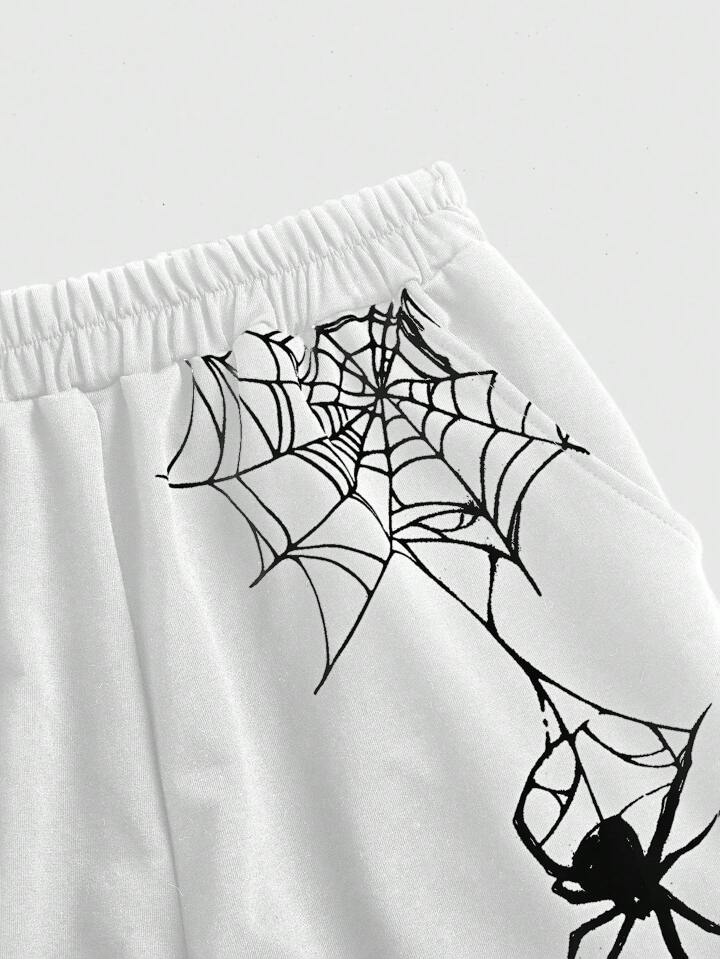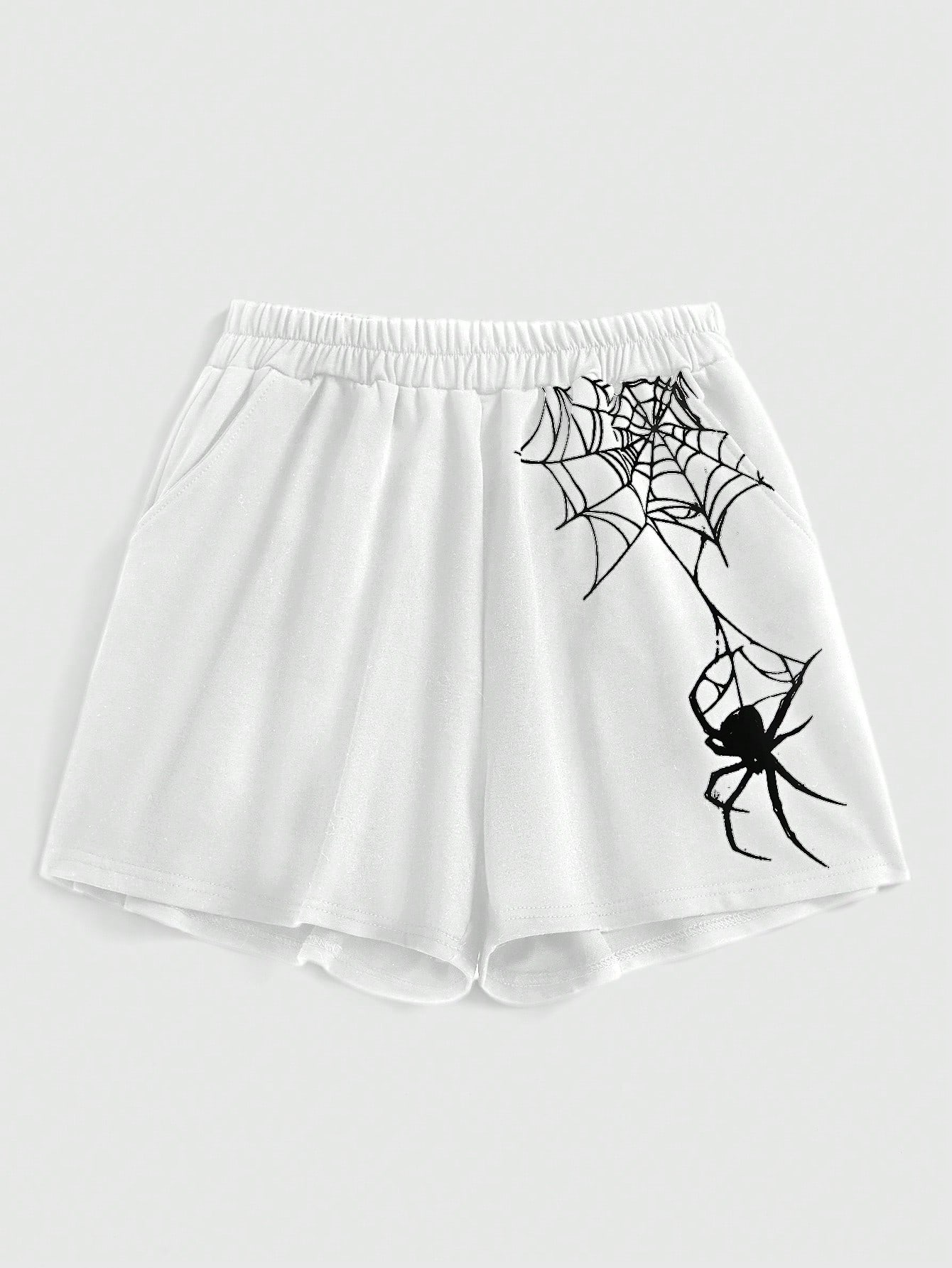 Grunge Punk Pantaloncini larghi e casual in maglia con tela di ragno e tasche, adatti per le donne