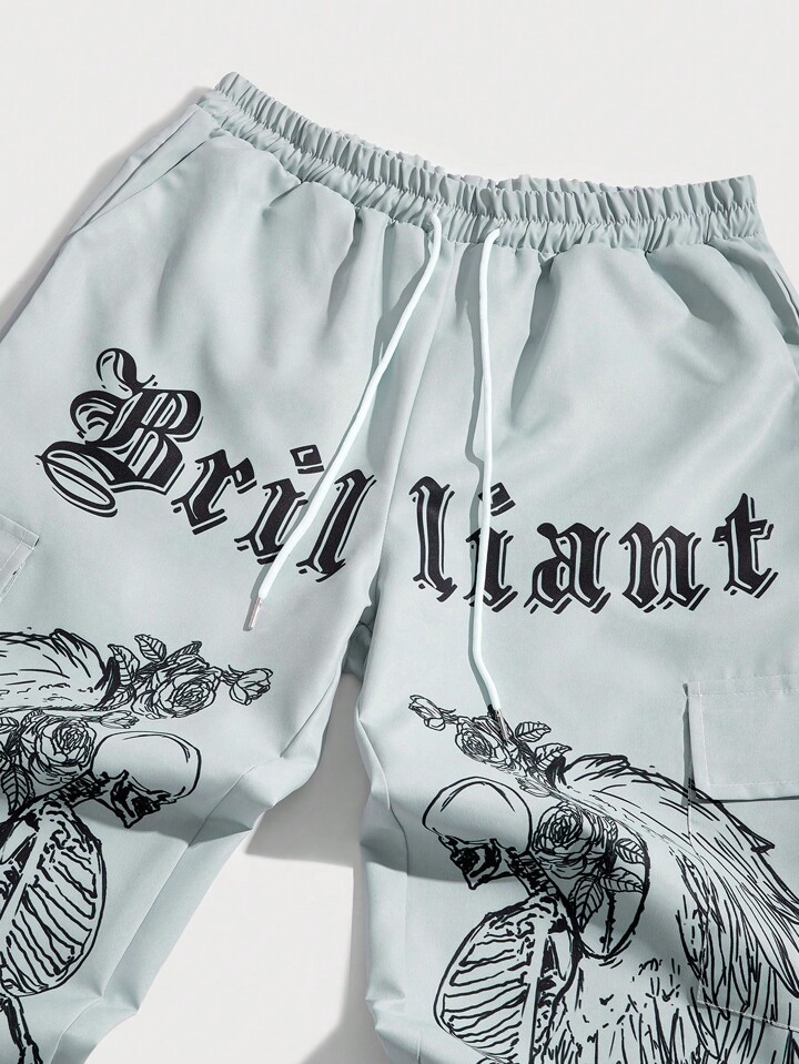 Grunge Punk Pantaloni Da Uomo Con Stampa Letter & Wings E Coulisse In Vita