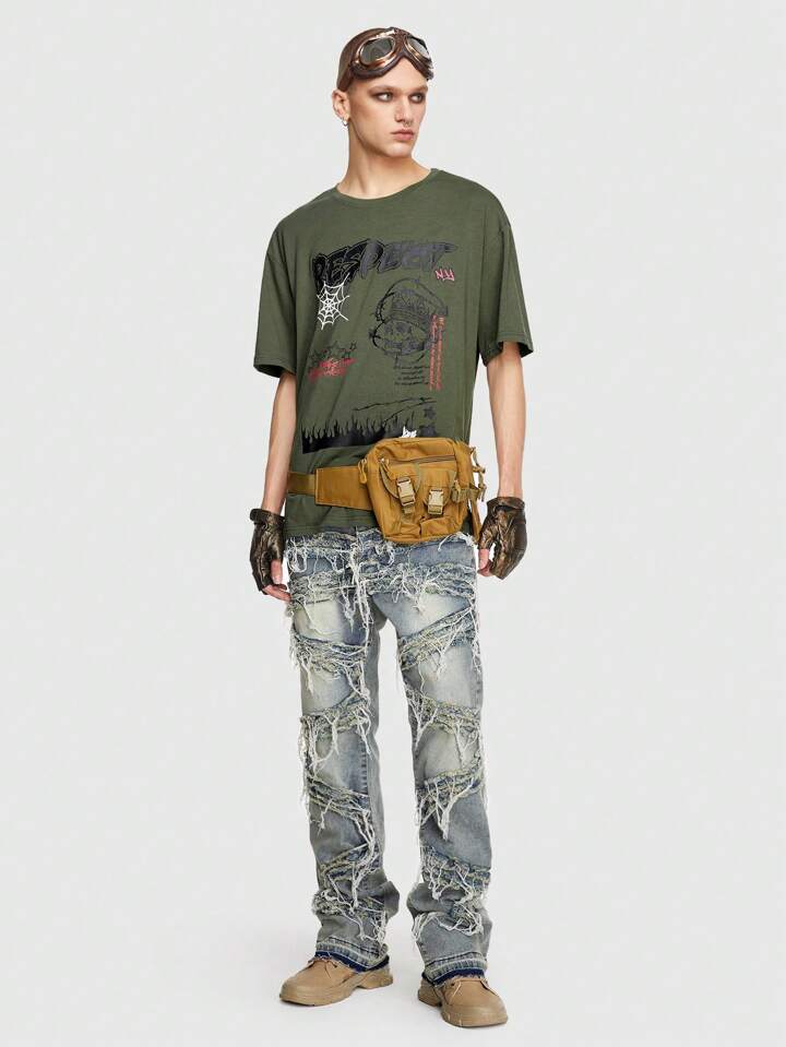Grunge Punk Uomo Maglietta con spalla cadenti con grafica slogan