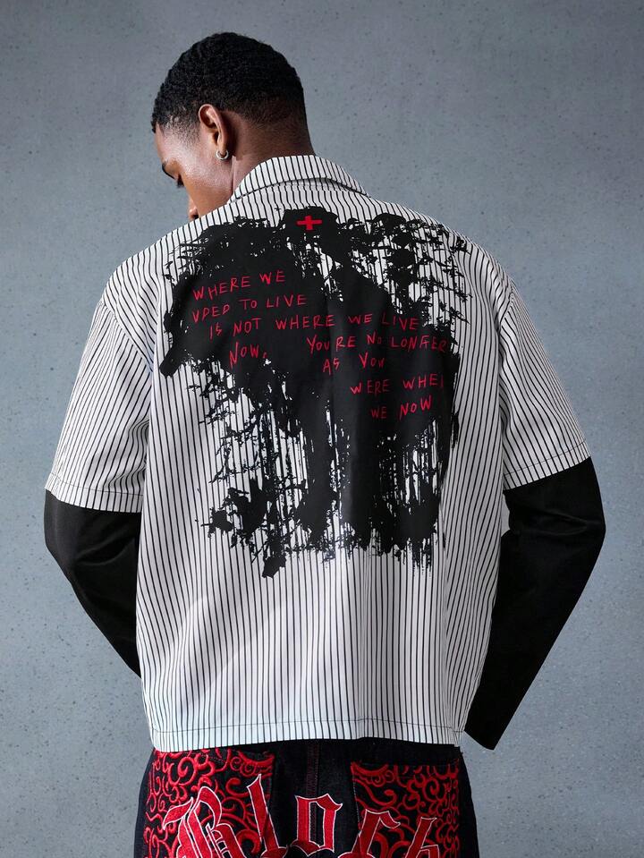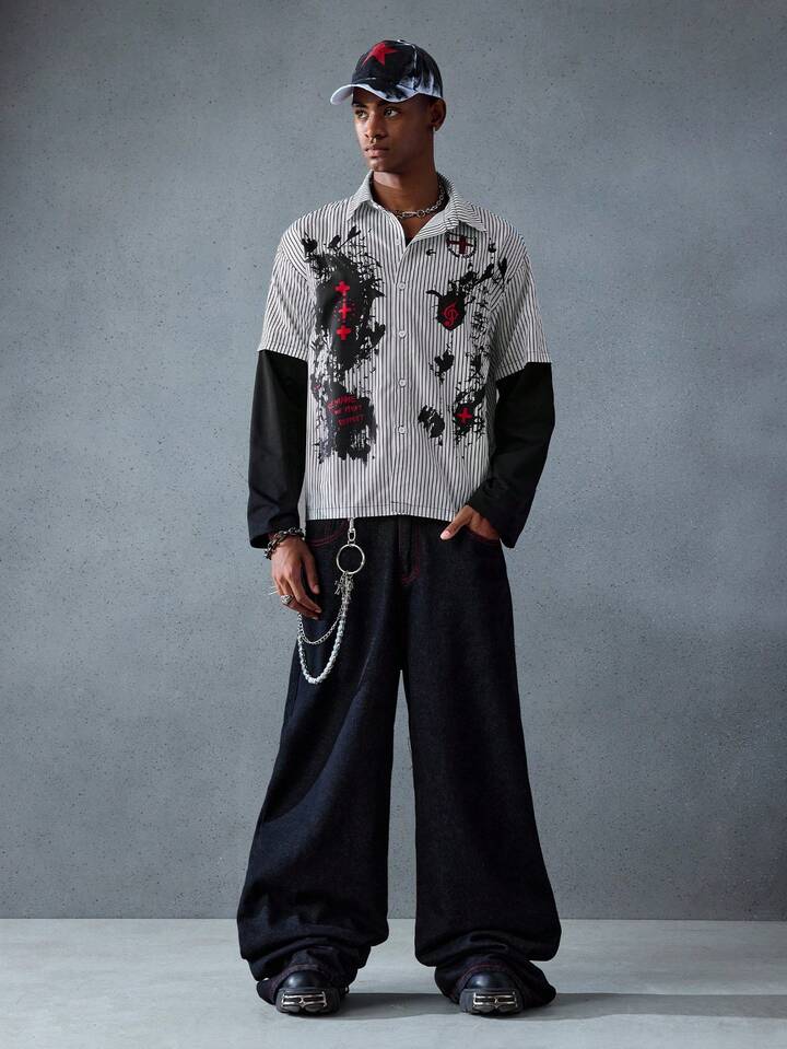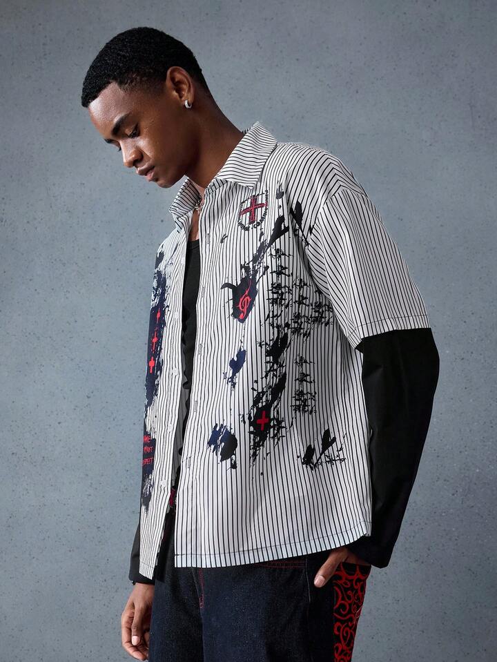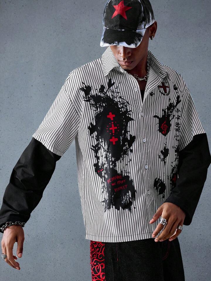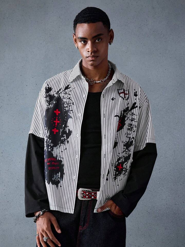 Grunge Punk Camicia a righe e patchwork di moda per uomo in autunno