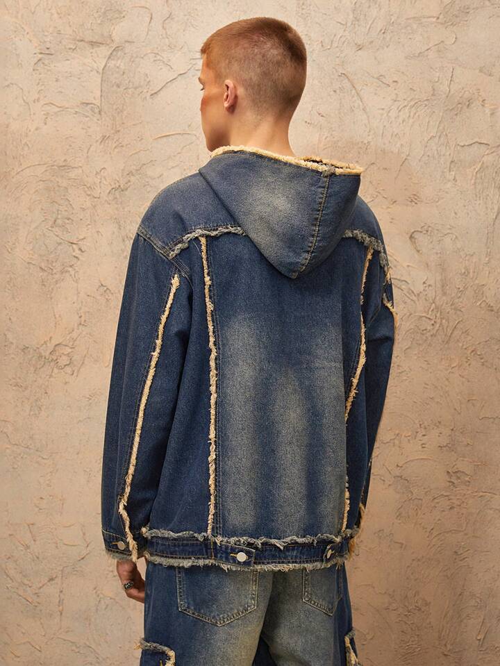 Grunge Punk Maglione con cappuccio casual da uomo con bordi sfilacciati, autunnale