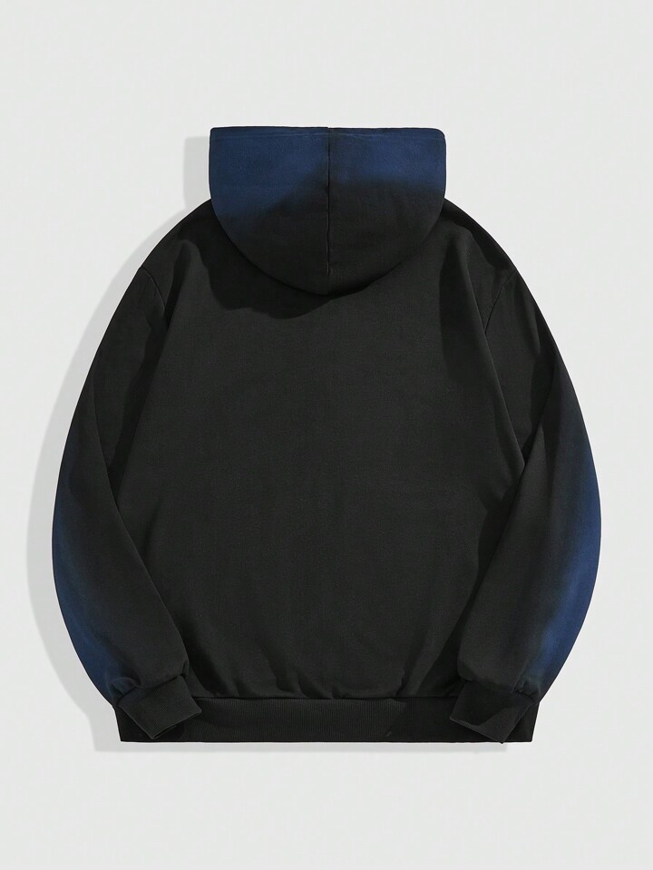 Grunge Punk Felpa con cappuccio oversize casual sfumata con spalle a caduta, coulisse e chiusura lampo, per uomo, adatta per primavera e autunno
