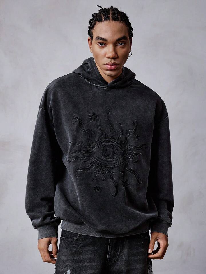 Grunge Punk Felpa con cappuccio casual, ampia, con stampa ad occhio, da uomo, adatta per autunno/inverno