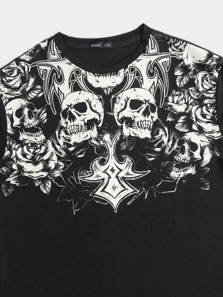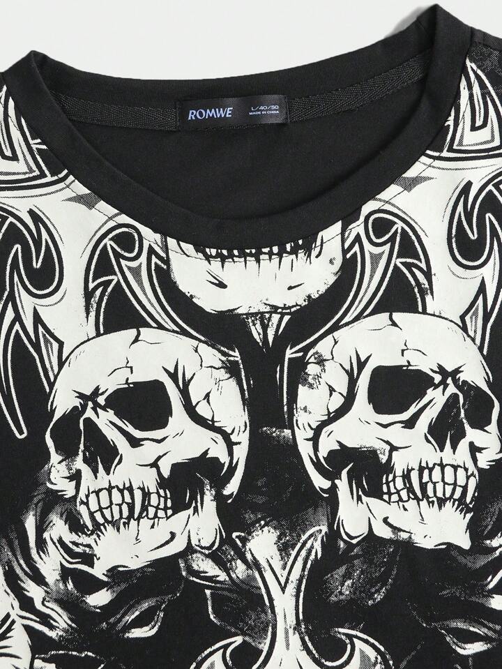 Grunge Punk Maglietta uomo con stampa di teschio stile gotico, di vintage per strada